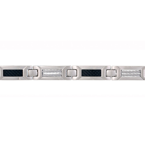 Un accessoire viril et esthétique pour te dévoiler. Voici un bracelet souple à motif en acier 316L inoxydable et habillé de PVD noir brillant, pour un style unique. Son cordon en câble noir te permet d'effectuer un réglage de 19 à 20,5 cm. Son fermoir à clip double est très solide. Garanti 2 ans, ce petit bijou t'apporte charisme et élégance. La touche finale qui élargit les possibilités de style. Cet accessoire Phebus, fait de matériaux inoxydables, renforce ton attitude casual et finalise tes looks à la perfection. Un élément subtil, idéal pour te démarquer au quotidien.