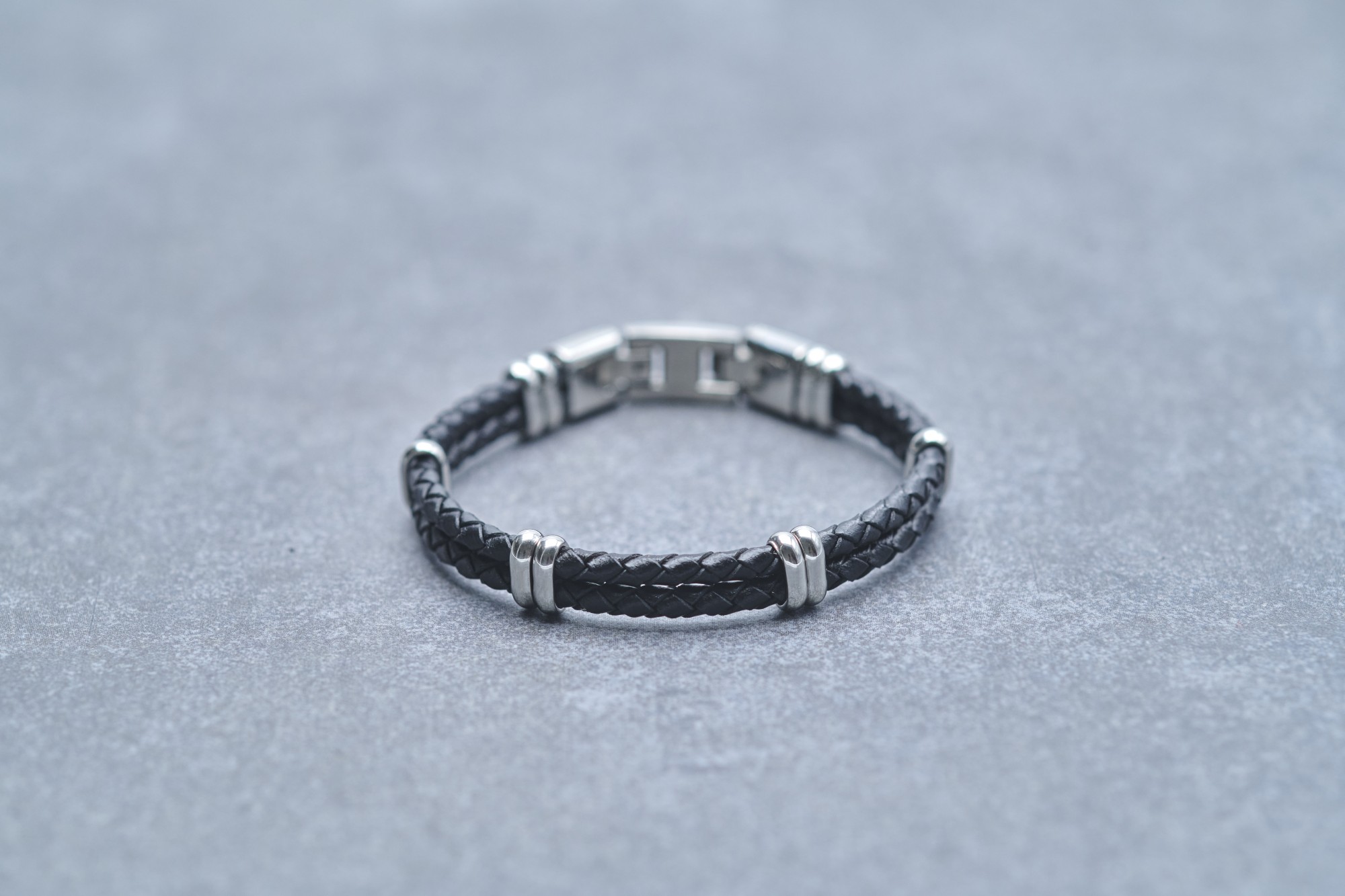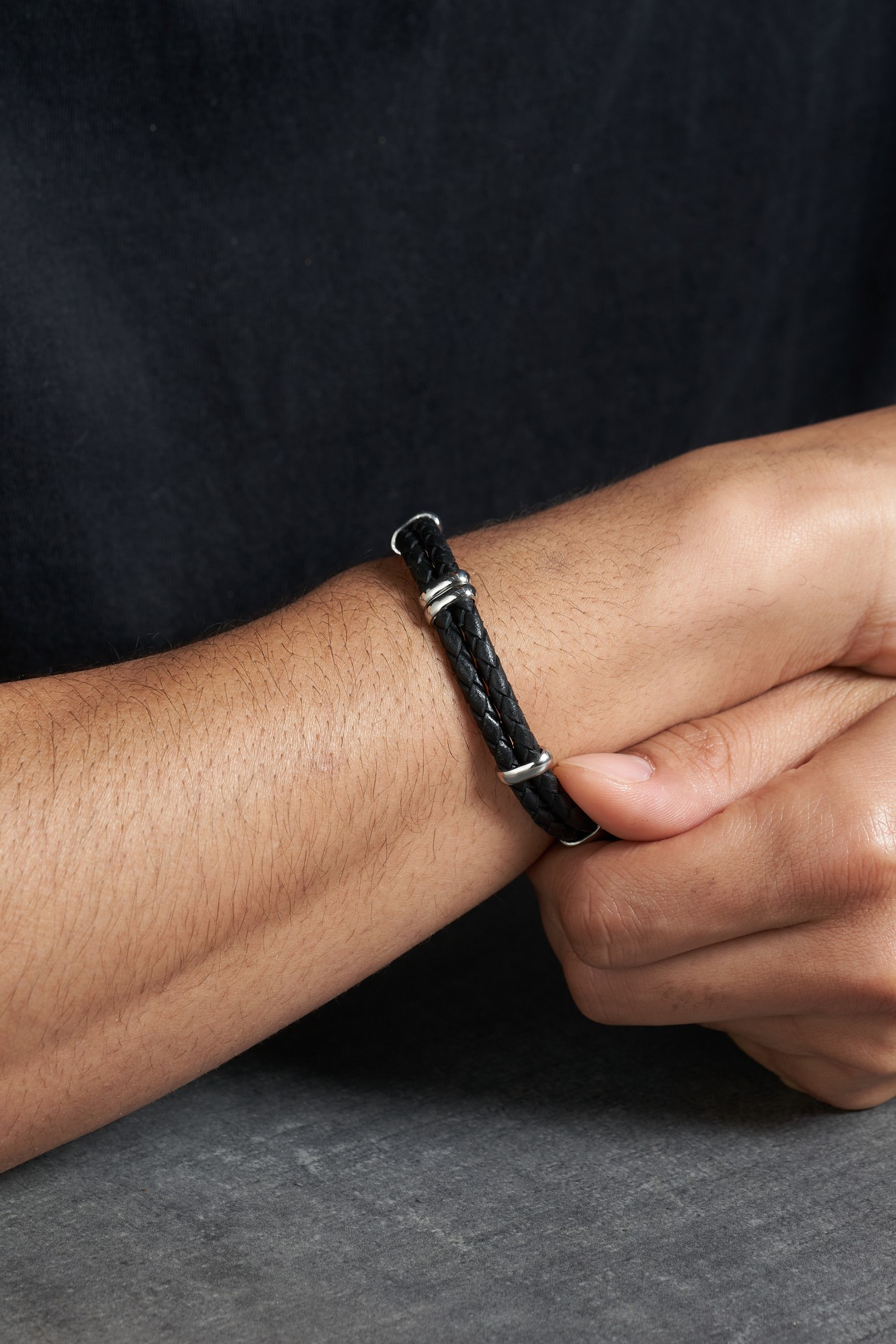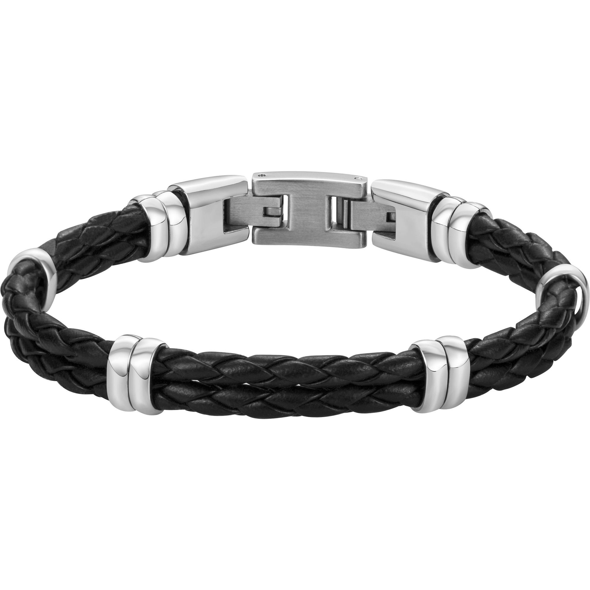 Une conception de qualité, pour un bijou viril et novateur. Ce bracelet souple est composé de deux cordons noirs de cuir tressé, liés par de petits éléments en acier 316L inoxydable blanc brillant. L'accessoire est sécurisé par un fermoir à clip double, et sa longueur de 19 cm peut être rallongée de 1,5 cm. Ce bijou conçu pour durer de nombreuses années est garanti 2 ans. Un bracelet en cuir à la forme innovante. Joue avec les belles teintes du modèle Joe pour accentuer l'élégance de tes tenues. Phebus te propose ici un bracelet pour homme en cuir et acier inoxydable qui fait la différence.