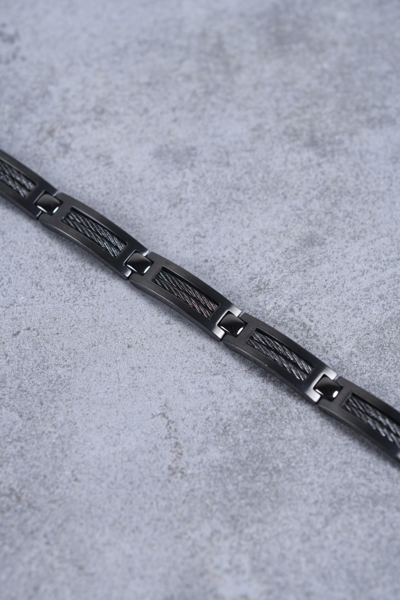 Un bijou robuste, esthétique et plein d'éclat. Voici un bracelet en acier 316L inoxydable et PVD gris brillant, orné d'un câble noir hyper tendance. Profite de sa longueur ajustable de 19,5 à 21 cm, de son fermoir à clip double pratique... et de sa garantie de 2 ans. Le bracelet masculin qui te sort du lot. Porte ce bijou inoxydable sur ton bras dominant, pour le mettre en valeur et donner une touche d’originalité à tes tenues. Le bracelet Sohan s'associe facilement à tous tes autres accessoires Phebus pour homme.