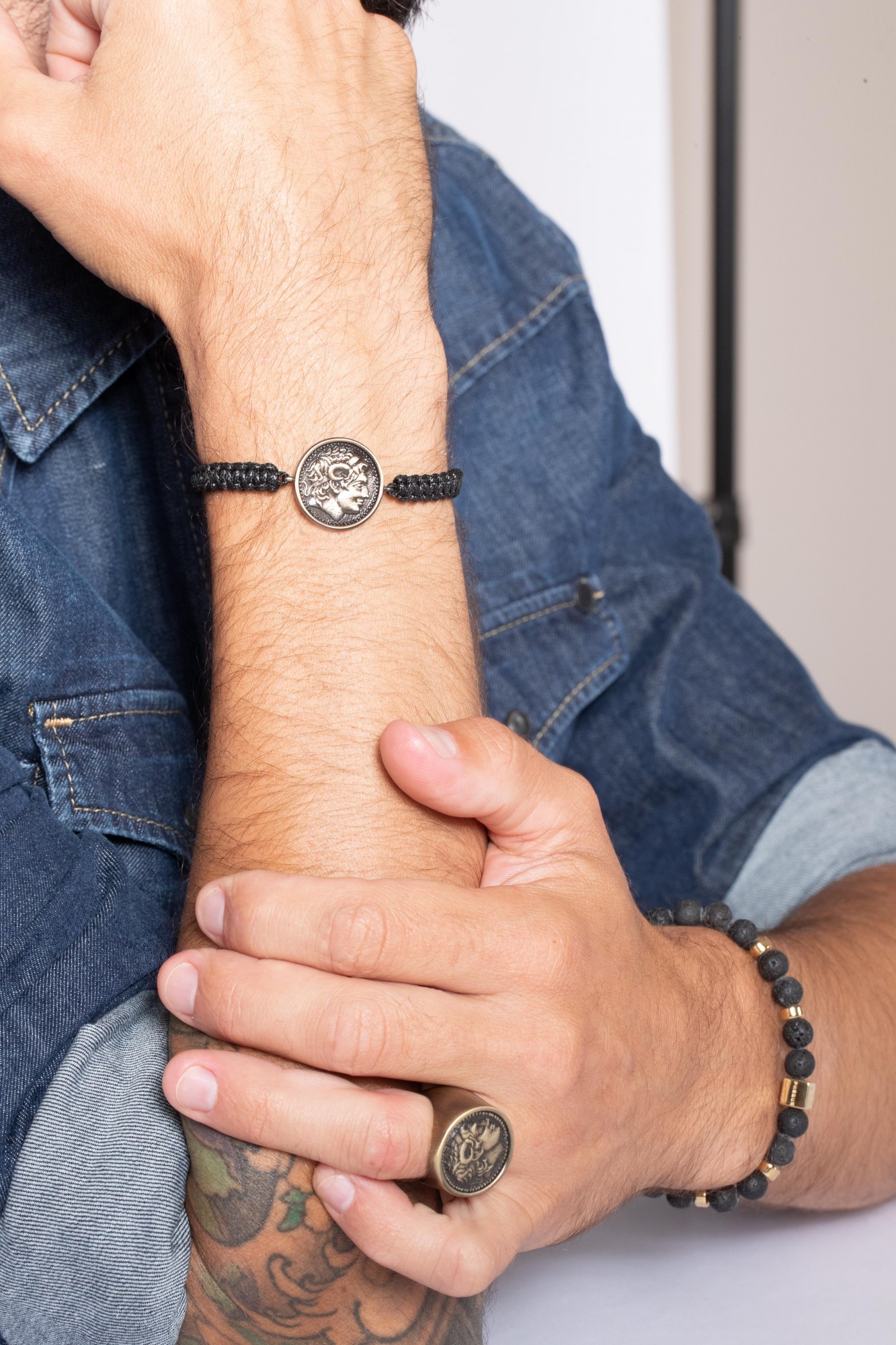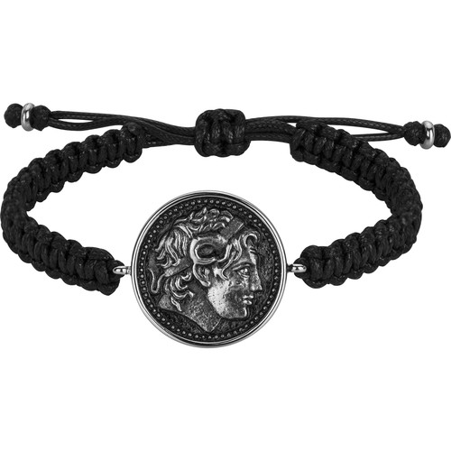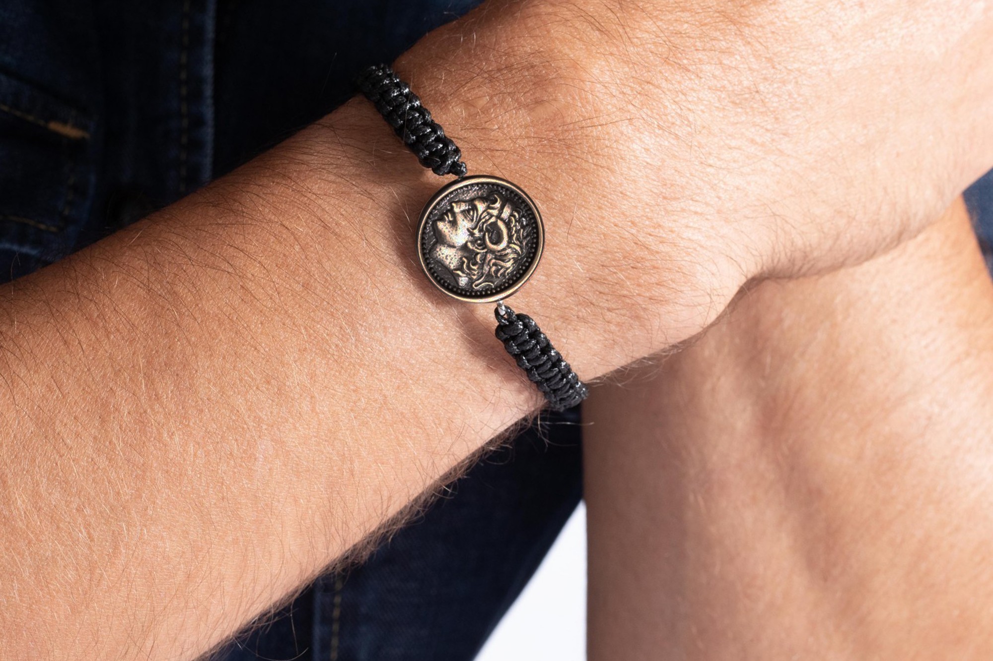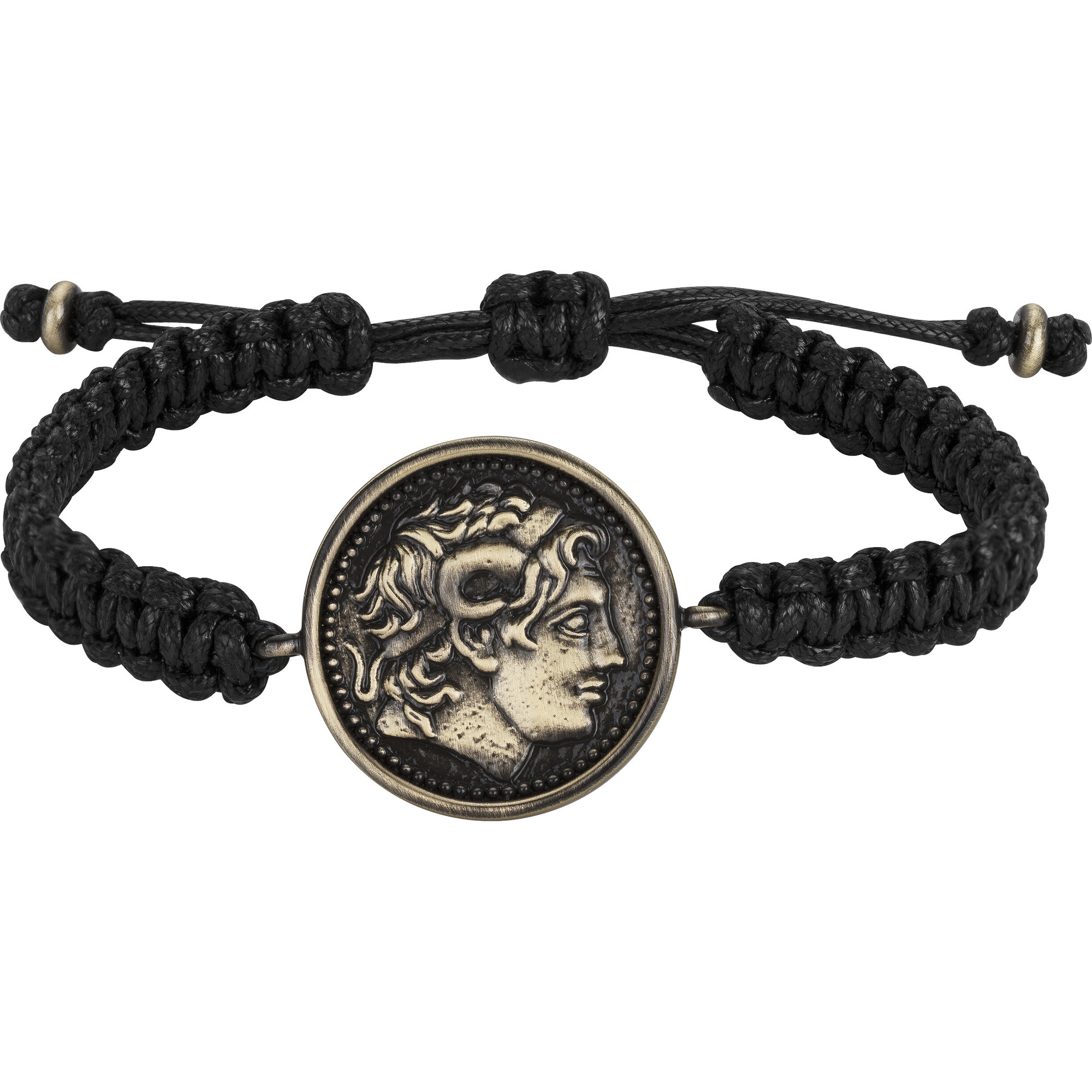 Bracelet Legend shamballa, motif figure symbolique Alexandre en acier 316L inoxydable bronze, longueur réglable de 18 à 24 cm.