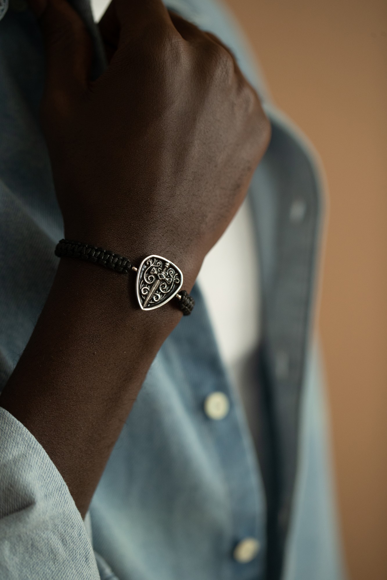 Bracelet en acier 316L inoxydable et cuir, d'inspiration écusson. Ce bracelet Phebus est conçu pour durer : garanti 2 ans, il est fabriqué en acier inoxydable de grande qualité et traverse les années en gardant son aspect originel. Le fermoir shamballa te permet de régler sa longueur de 18 à 24 cm. Bracelet gothique pour homme en acier et cuir. L'écusson est un emblème. L'épée incarne la force et le courage. Pour mettre en valeur ta personnalité d'homme déterminé et combattif, quoi de mieux que ce bracelet mythique, alliant style gothique et vintage ?.