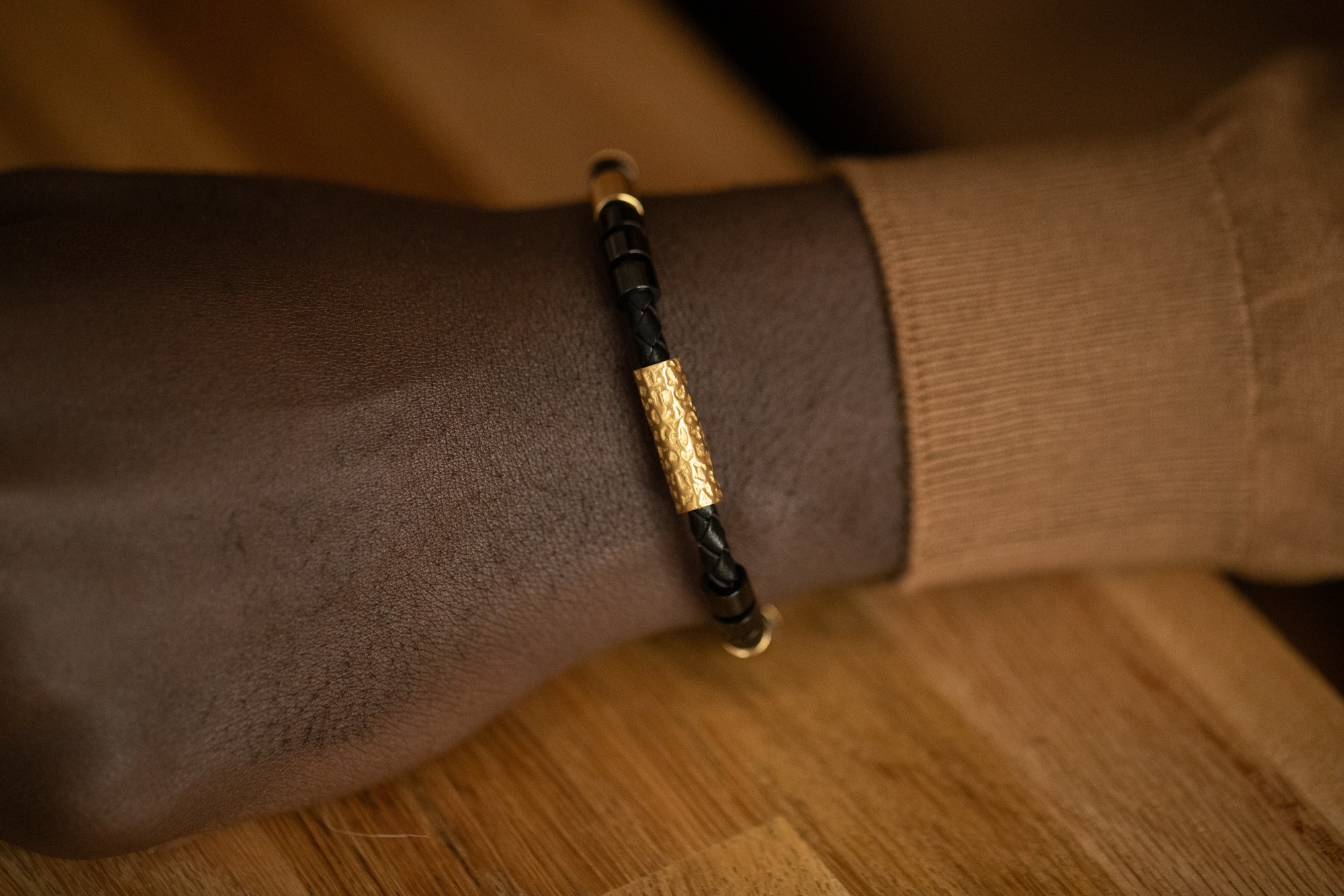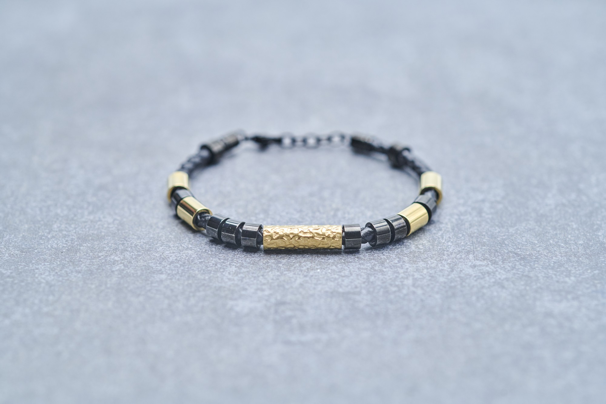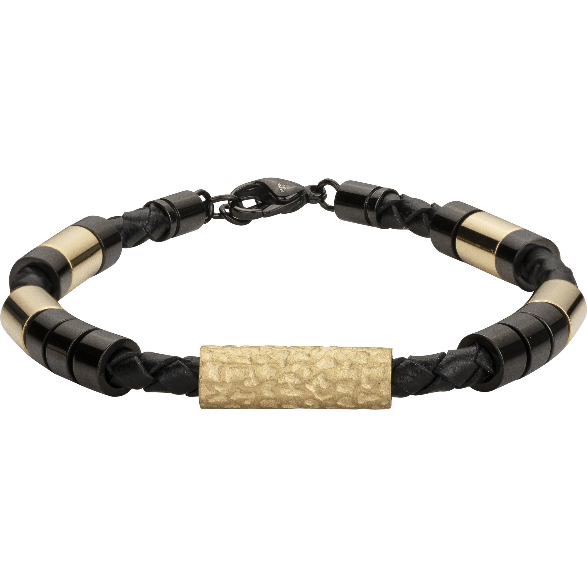 Bracelet pour homme Phebus en acier 316L inoxydable doré et noir. Le bracelet Jude est garanti 2 ans. Il est fabriqué en acier inoxydable, un matériau connu pour sa robustesse. Sa longueur, réglable de 19 à 21 cm, permet de l'adapter à toutes les tailles de poignet. Le mousqueton garantit une fermeture sécurisée. Un bijou à la fois sombre et rayonnant. Le bracelet Jude illumine toutes tes tenues grâce à ses éléments dorés, qui captent la lumière. Les perles noires lui apportent un style indémodable, qui convient à tous les hommes dans l'air du temps.