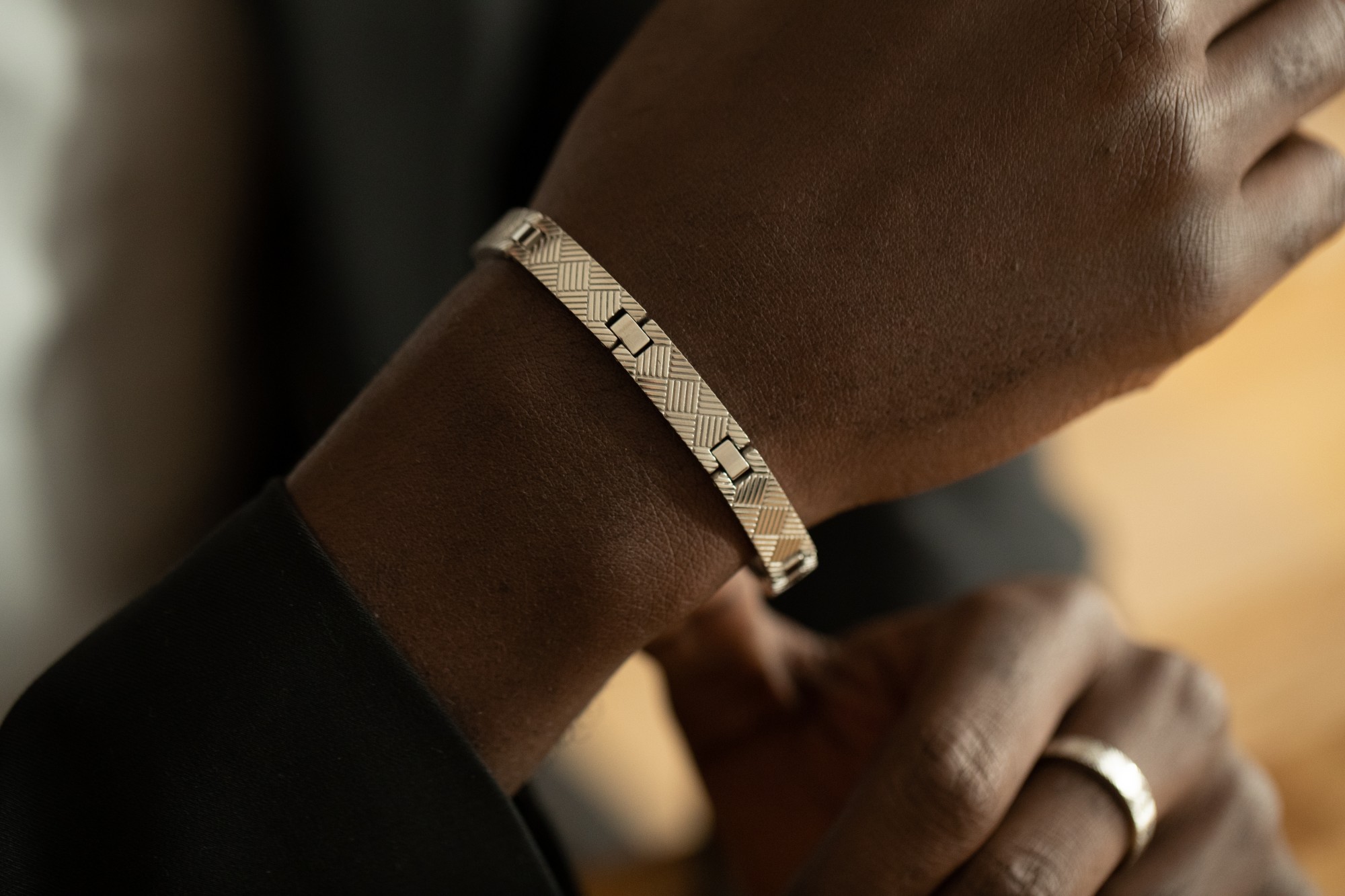 Bracelet pour homme Phebus en acier 316L inoxydable. Si tu es à la recherche d'un bijou solide, qui ne change pas d'aspect au fur et à mesure des années, le bracelet Gianni est fait pour toi. Garanti 2 ans, réglable de 19 à 20,5 cm et fabriqué en acier inoxydable de haute qualité, il ne manque pas de robustesse. Son fermoir à double clip te permet de le garder bien en place à ton poignet. Un bijou au design graphique. Avec ses plaques dorées ou argentées, le bracelet Gianni est idéal pour les hommes qui aiment les accessoires modernes, un brin originaux... et surtout très élégants.