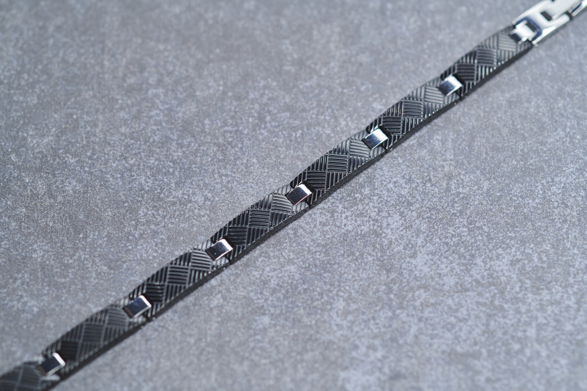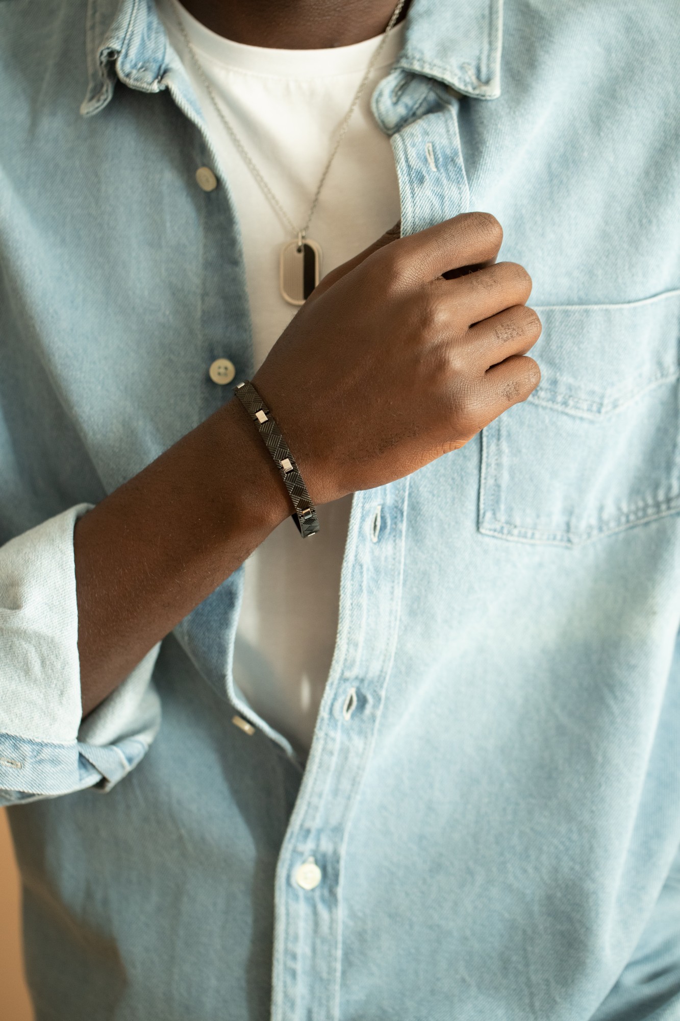 Des finitions impeccables qui soulignent ton style. Un bracelet en acier 316L inoxydable qui se distingue par ses motifs noirs quadrillés et te permet de le régler de 19 cm à 20,5 cm. Il dispose d'un fermoir à double clip et bénéficie d'une garantie de 2 ans. Un bijou pour homme aux magnifiques jeux de contraste. Sublime ton allure avec cet accessoire masculin Phebus plein d'élégance. Amateur de style urbain ? Joue sur la brillance de l'acier inoxydable, adroitement associée à un graphisme sombre. Un très bel objet, qui t'apporte aussi confort et liberté de mouvements.