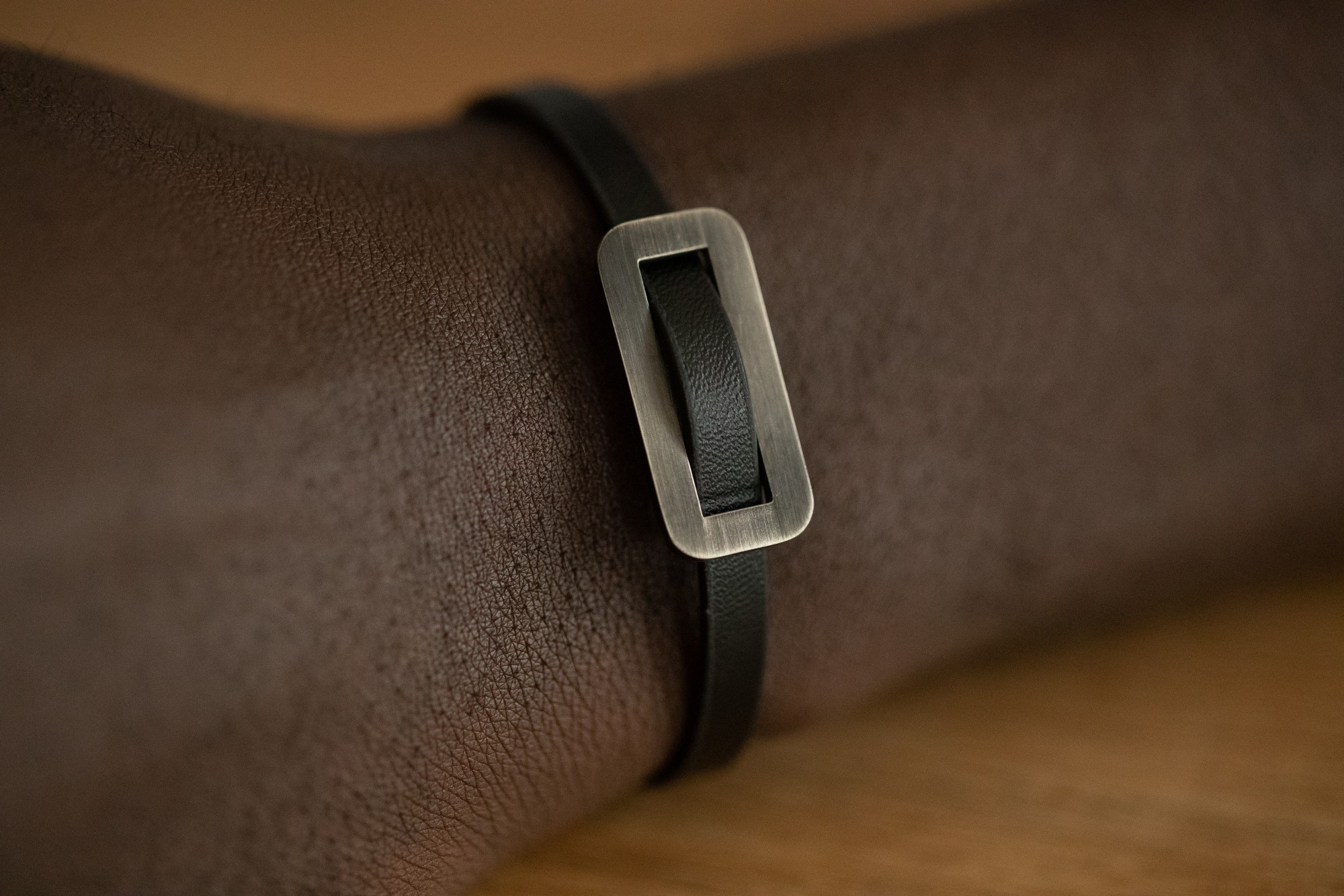 Un bijou sobre et tellement tendance. Ce bracelet de cuir noir porte en son centre une belle boucle rectangulaire en acier 316L inoxydable. L'ensemble profite d'un bel aspect brut et nature. Sécurisé par un mousqueton et ajustable de 18 à 20 cm, ce bijou très robuste est garanti 2 ans. Doux au toucher, il est ton partenaire idéal pour rester chic et simple. Un épatant mélange de styles élégant et brut. Ce métal inoxydable, moderne et très masculin, autorise de multiples associations. Choisis cet accessoire Phebus qui te représente pour parfaire tes tenues.
