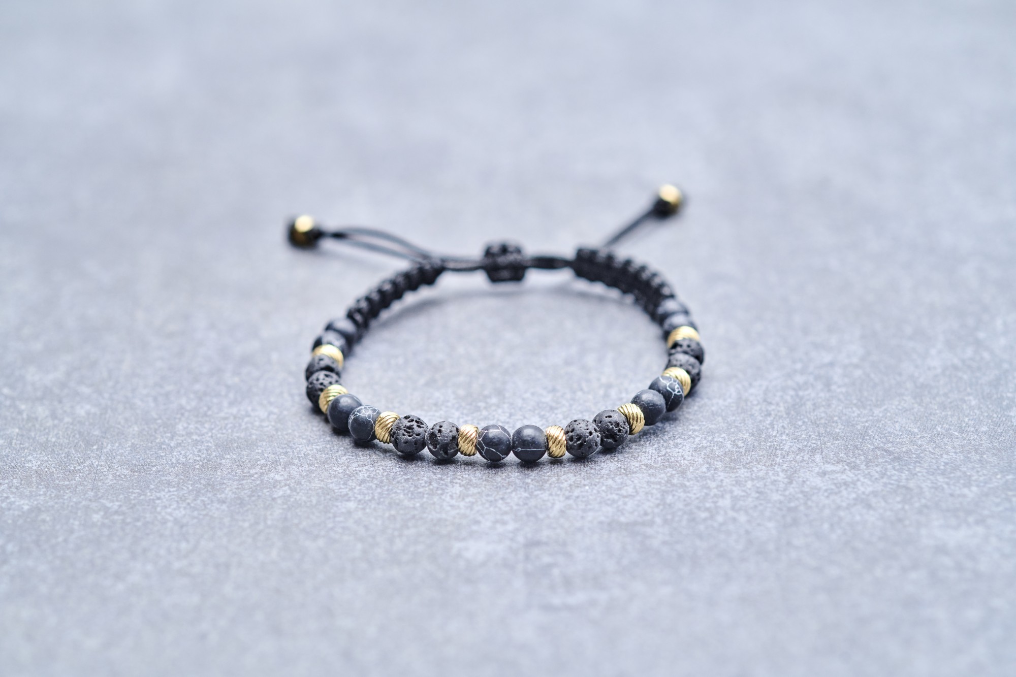 Un accessoire durable en acier inoxydable. Ce bracelet en perles masculin affiche une alternance de perles noires à l'aspect craquelé ou irrégulier et de perles de couleur dorée. L'accessoire pour homme Abel de Phebus est fabriqué avec de l'acier 316L inoxydable et des lanières de cuir, des matériaux qui lui assurent une résistante à toute épreuve. Le produit est garanti 2 ans et la sécurité du bracelet est assurée par un fermoir Shamballa, qui te permet d'ajuster le bijou à ton poignet facilement. Le noir et l'or pour un look élégant. Profitant d'un style ethnique chic, le bracelet Abel de Phebus n'est pas seulement original : son coloris noir brut parsemé d'éléments dorés en fait un bijou particulièrement élégant. Tu peux le porter au quotidien pour affirmer ton style et ta masculinité.