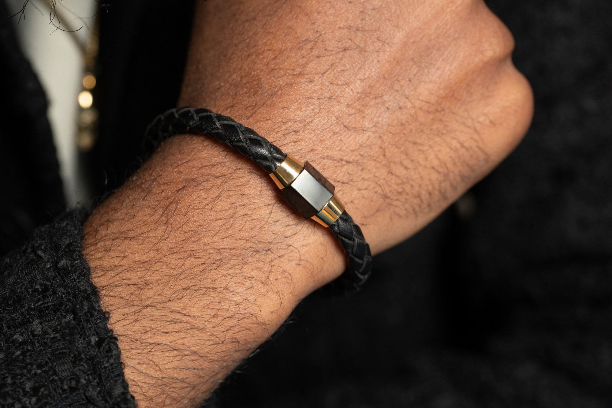Ce bracelet masculin séduit par la richesse de ses textures et sa finition haut de gamme, idéale pour accompagner aussi bien une tenue habillée qu’un look casual chic.