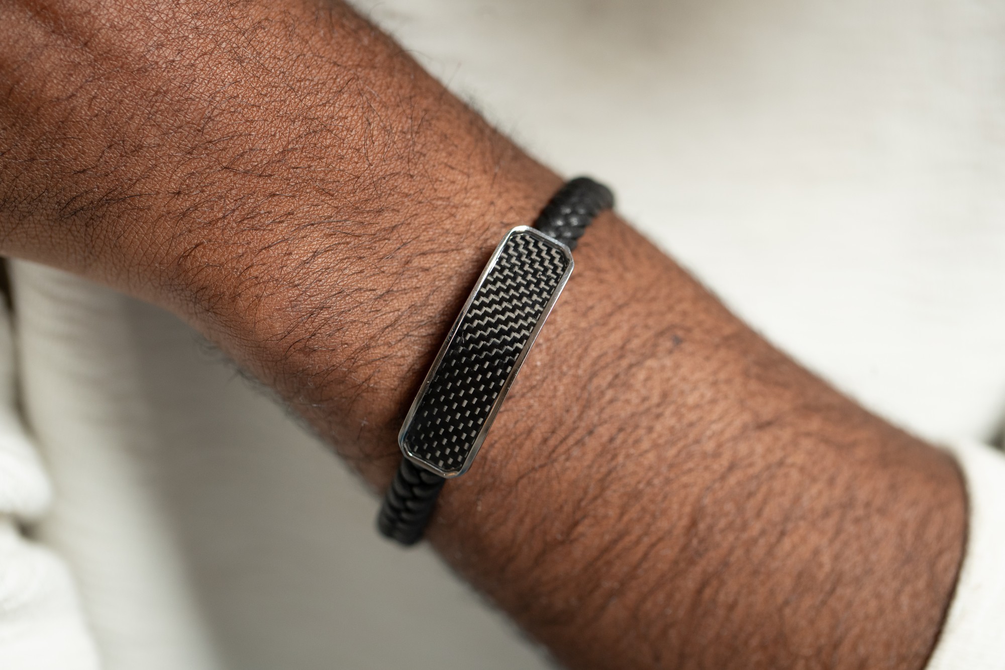 Le bracelet homme Léonel incarne parfaitement l’esprit urbain et contemporain de Phebus. Conçu en cuir noir tressé, il s’orne d’une plaque centrale en acier brossé qui apporte un contraste moderne et élégant. Son fermoir sécurisé en acier assure un porté confortable au quotidien.