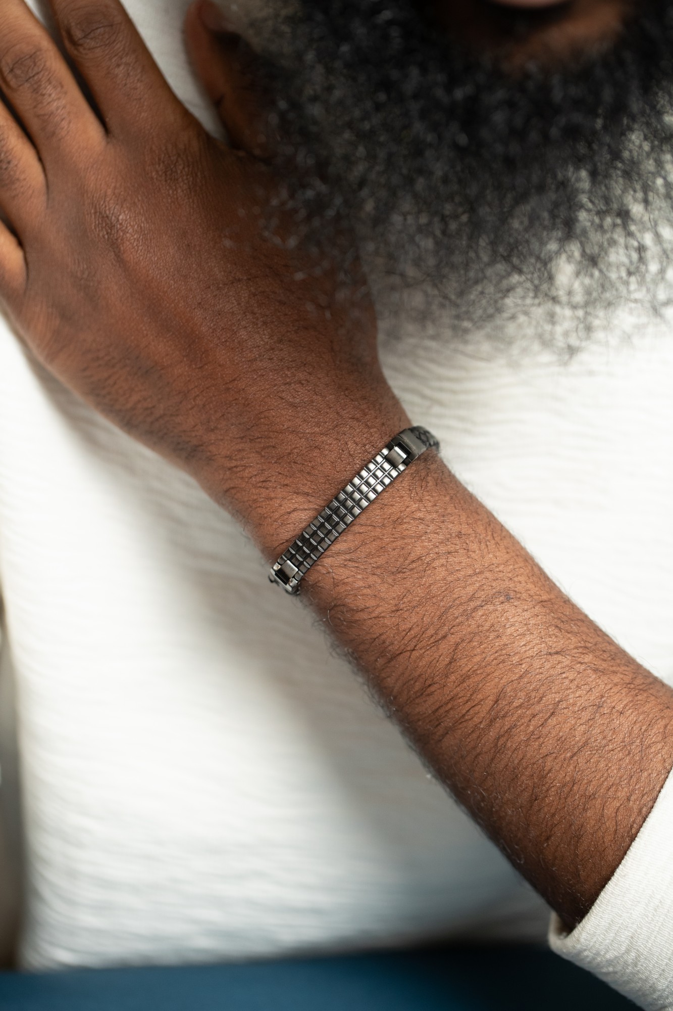 Avec son design moderne et masculin, le bracelet Camil est l’accessoire idéal pour sublimer un look urbain et affirmé. Polyvalent, il se porte aussi bien au quotidien qu’en soirée, et incarne l’ADN street chic de la marque.