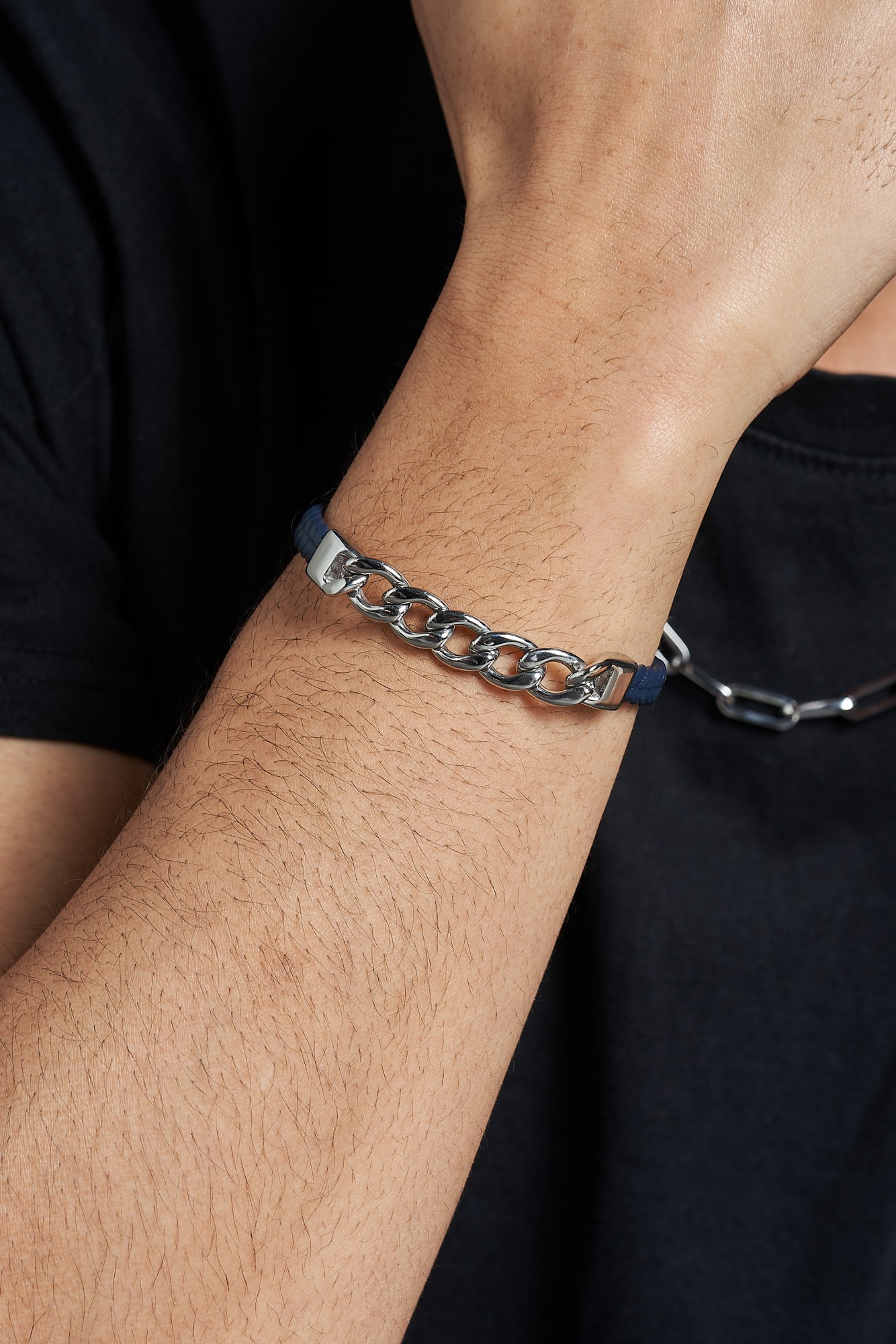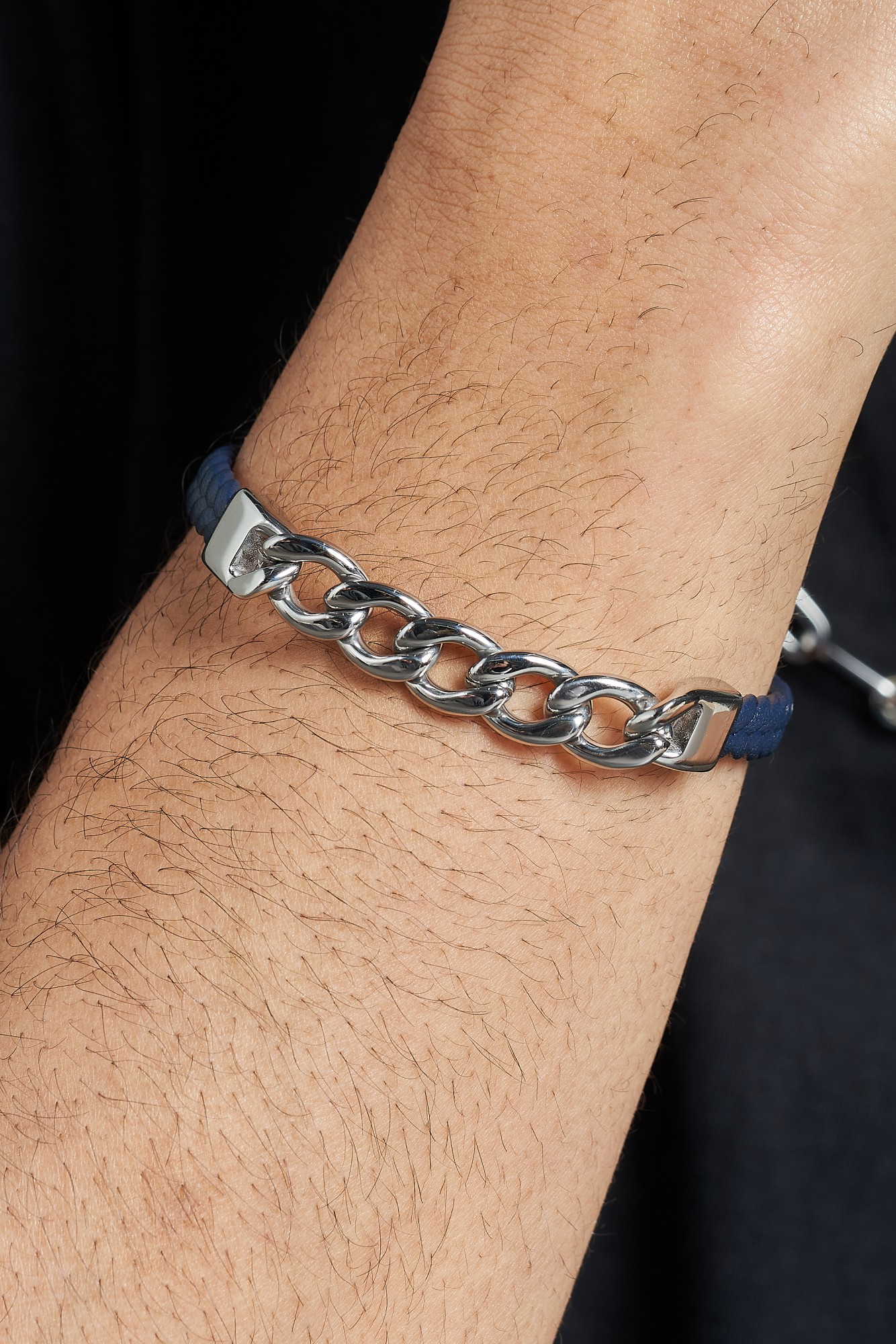 Le bracelet homme Lisandro se décline dans une version originale en cuir bleu tressé, pour un style à la fois moderne et distinctif. Au centre, son maillon en chaîne acier apporte force et caractère, fidèle à l’univers urbain et masculin de Phebus. Son fermoir sécurisé en acier inoxydable assure confort et praticité au quotidien.