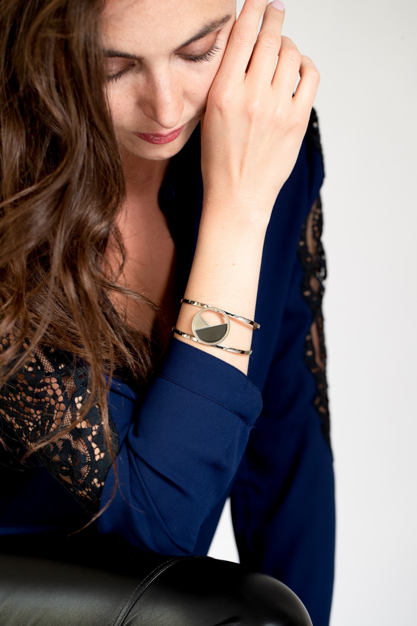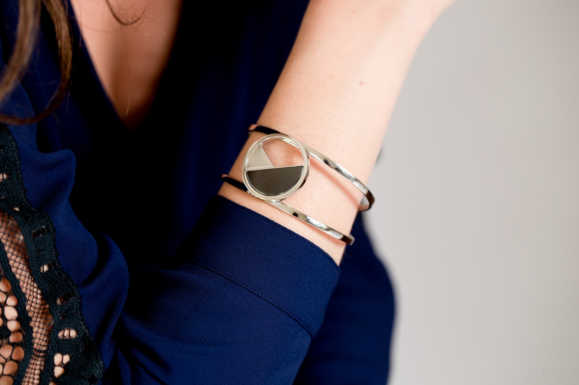 Bracelet Willow noir pour femme en céramique et acier 316L.