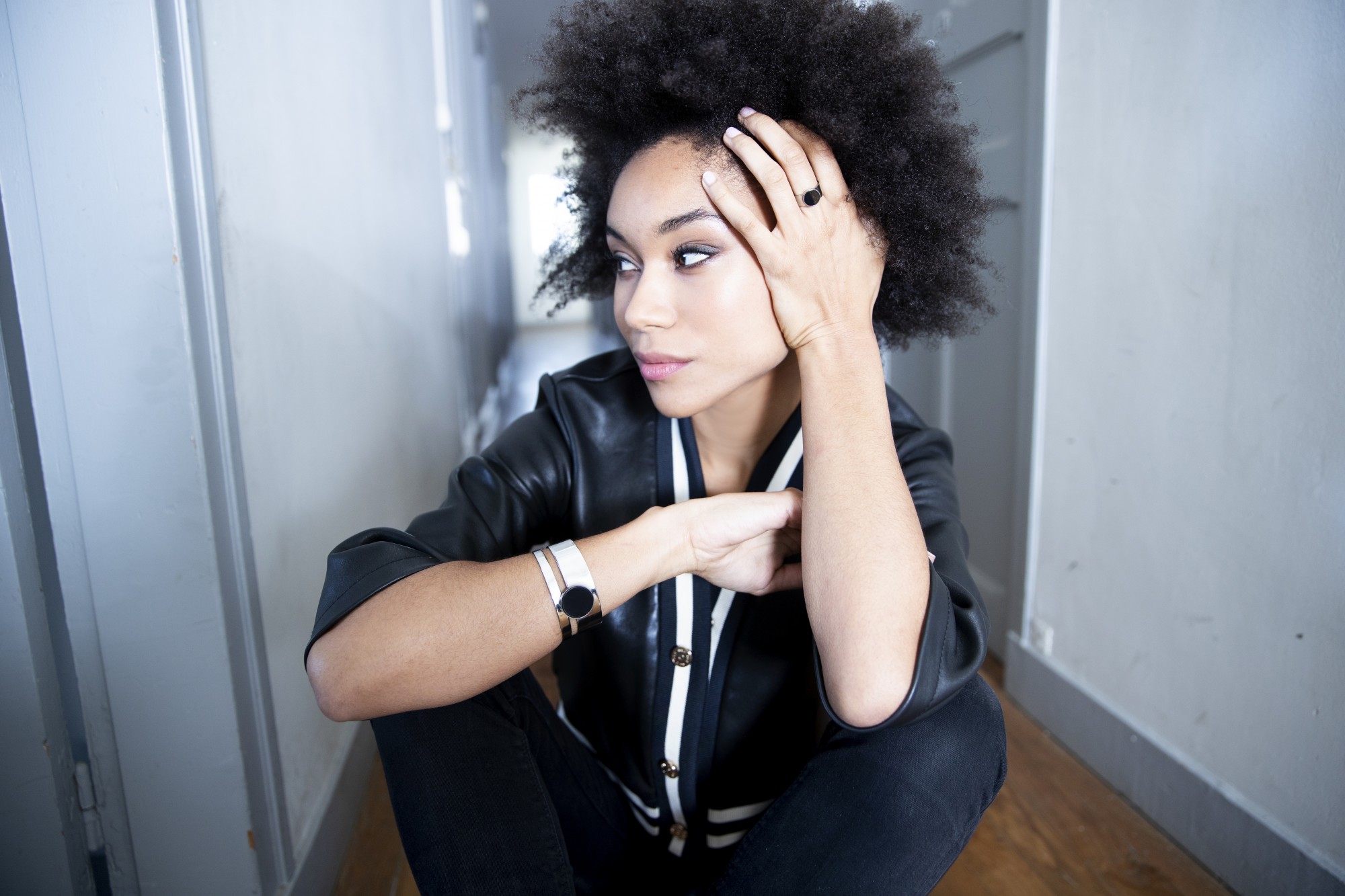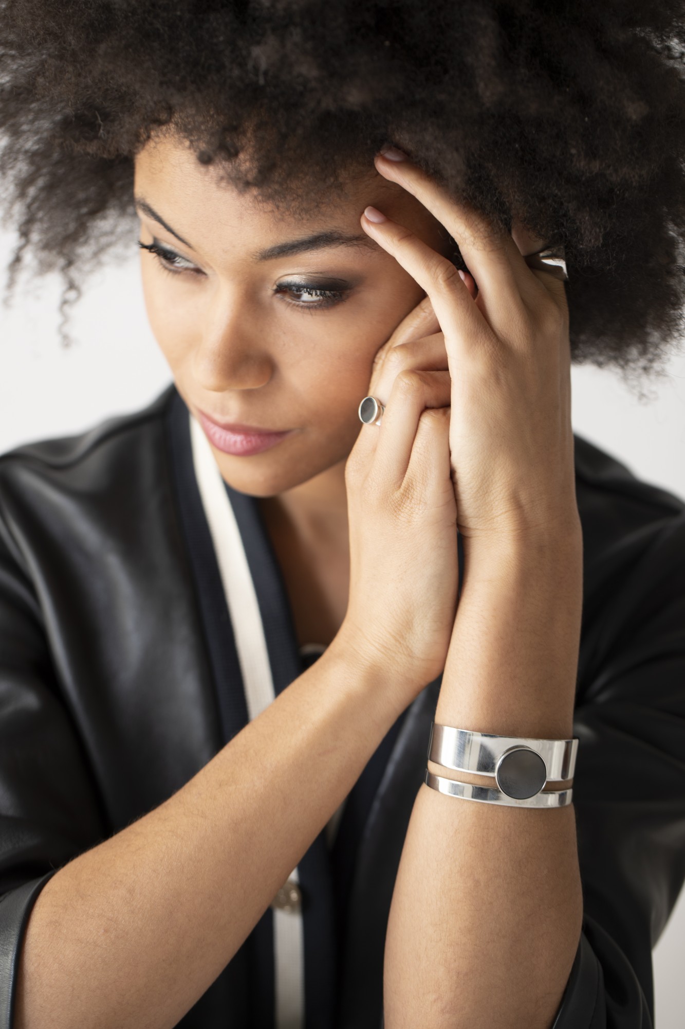 Bracelet Reagan noir pour femme en céramique et acier 316L.