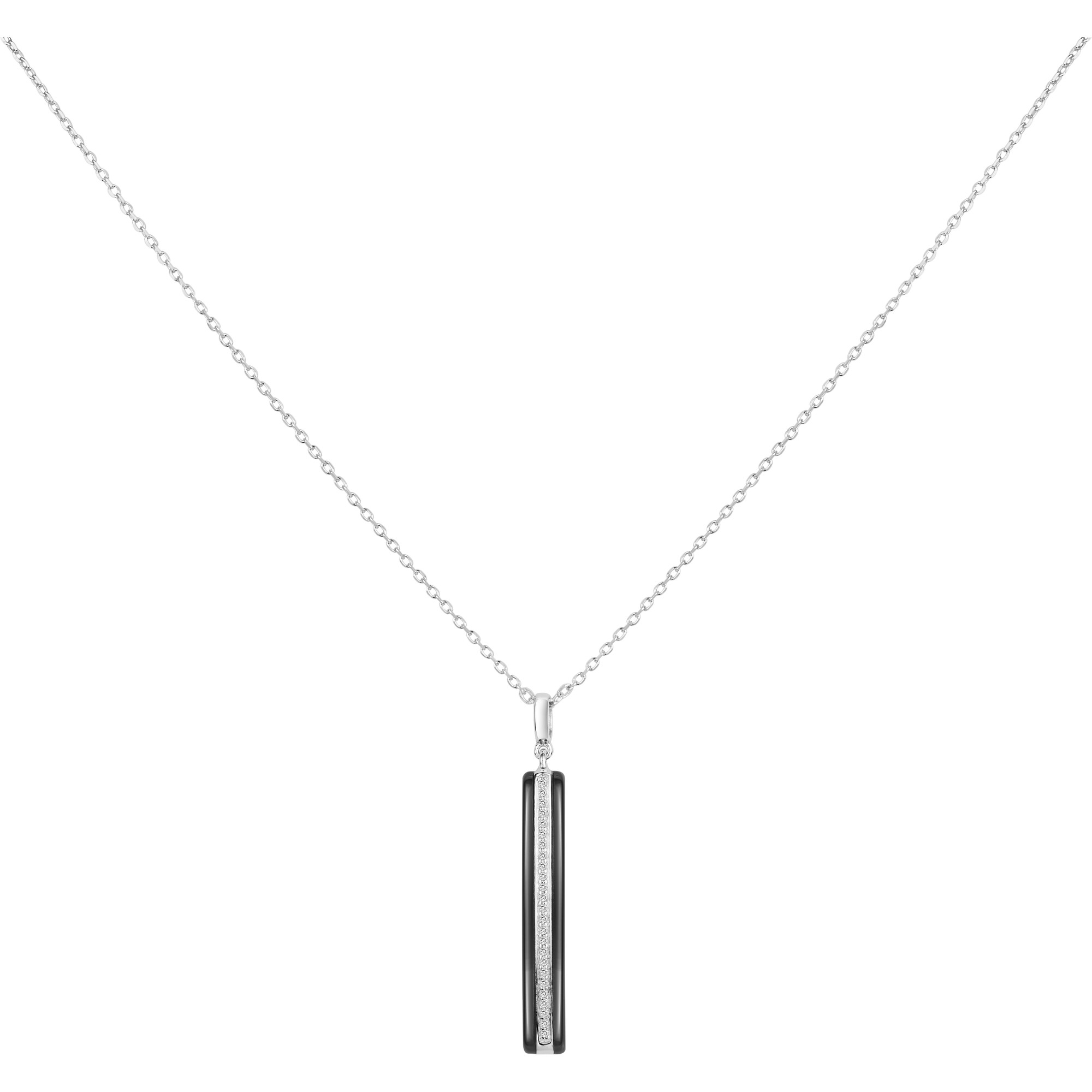 Son pendentif allongé en céramique noire est délicatement rehaussé d’une ligne d’oxydes de zirconium, qui souligne sa verticalité avec éclat.