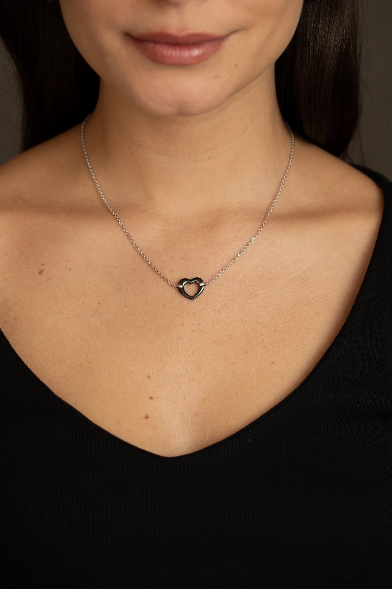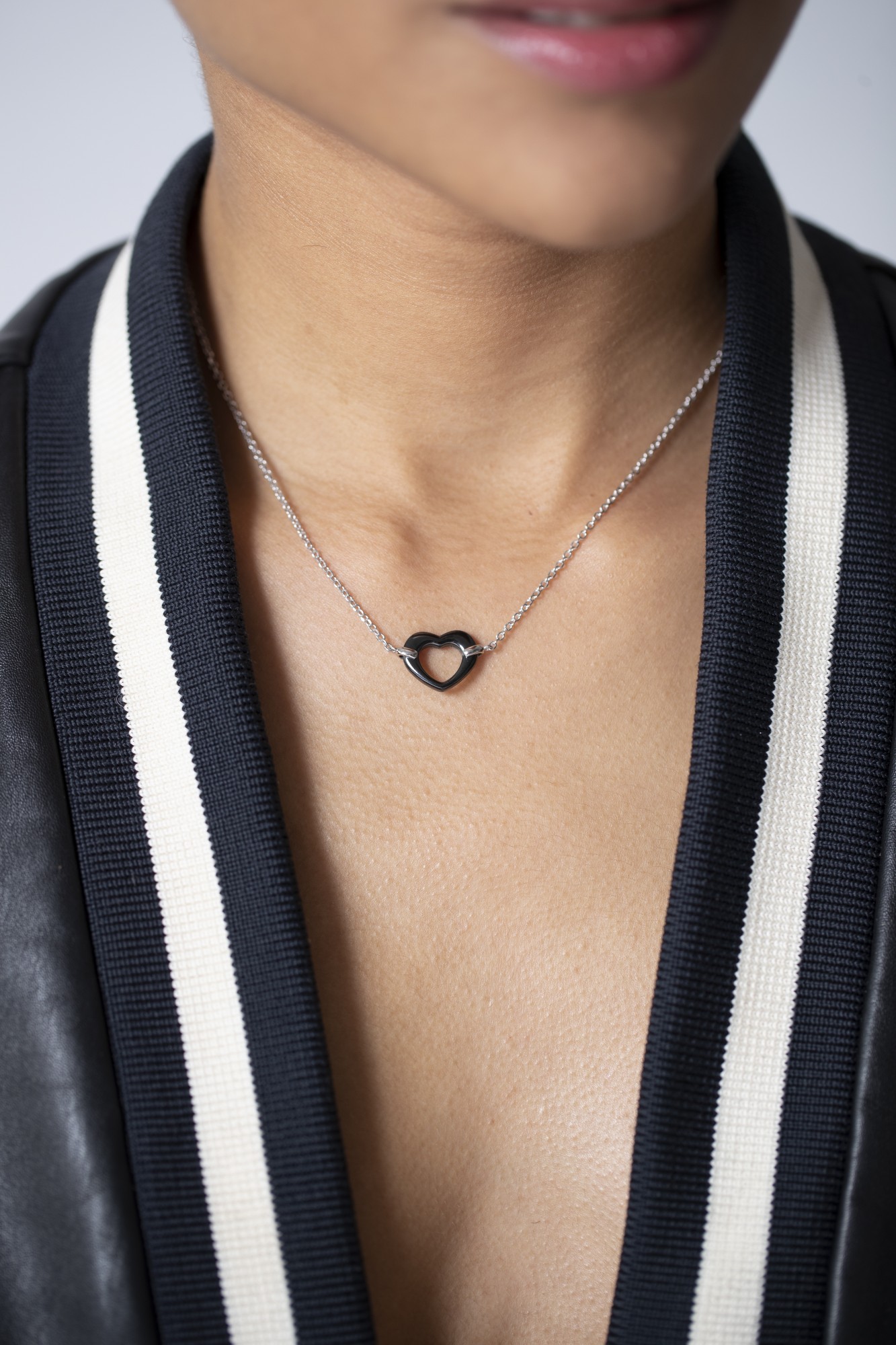 Le collier Frise revisite le symbole du cœur dans une version moderne et contrastée.