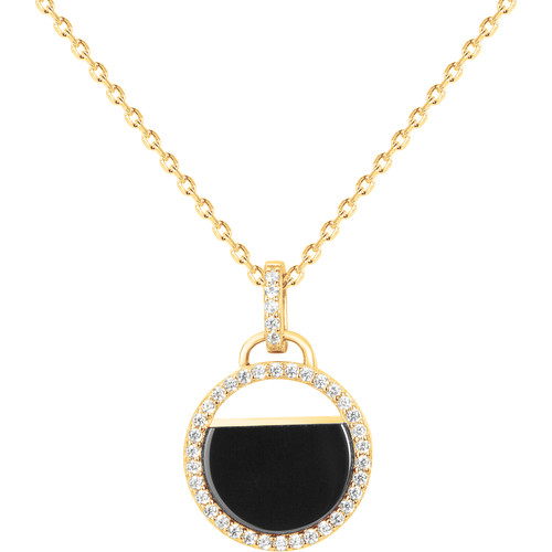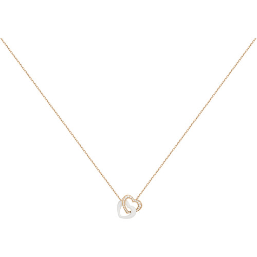 Ses deux cœurs entrelacés, l’un en plaqué or 18 carats rehaussé d’oxydes de zirconium, l’autre en céramique noire lisse, forment un contraste subtil entre éclat et intensité.