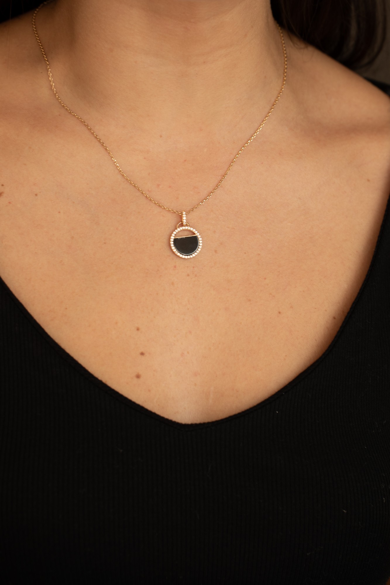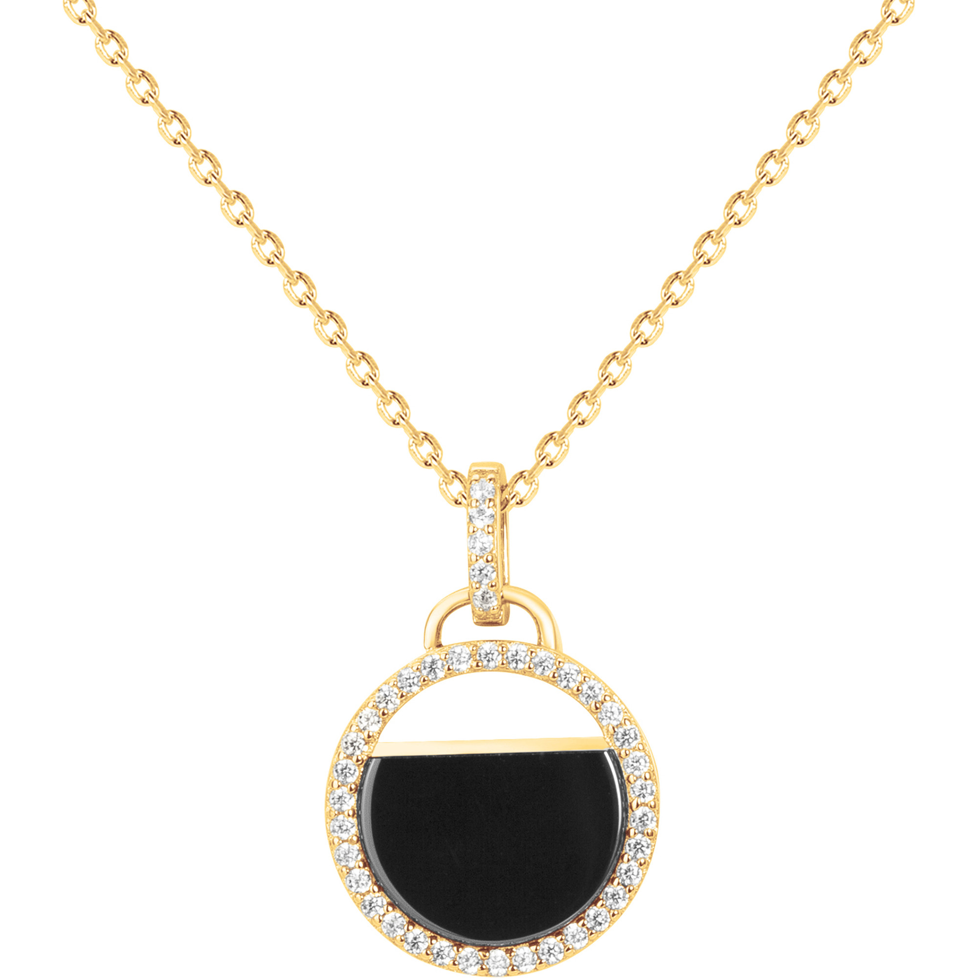 Le collier Ovale associe la profondeur de la céramique noire lisse à la brillance du plaqué or 18 carats orné d’oxydes de zirconium.