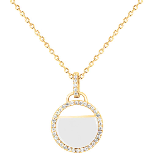 Composé d’une alternance de perles en céramique blanche lisse et d’anneaux en plaqué or 18 carats sertis d’oxydes de zirconium, il se distingue par son équilibre parfait entre brillance et douceur.