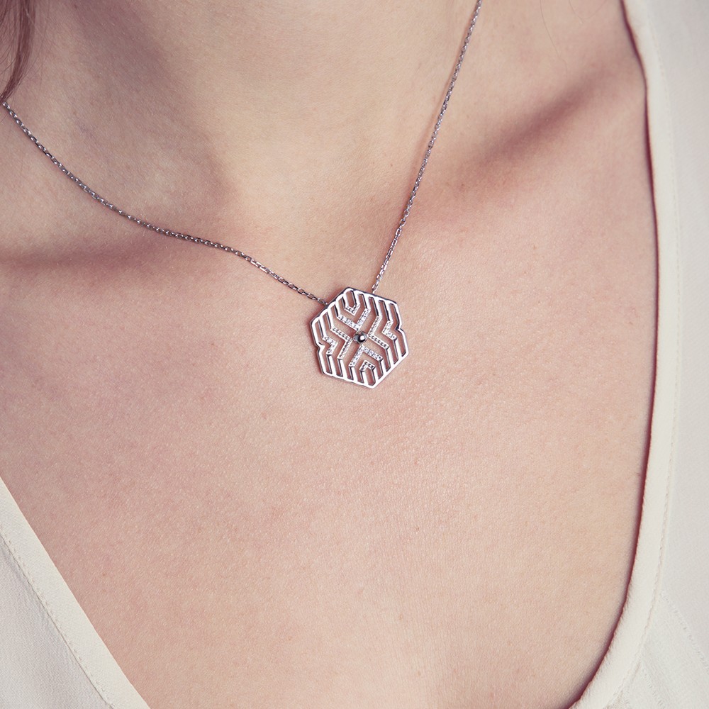 Collier pour femme en céramique et argent 925 millièmes rhodié.