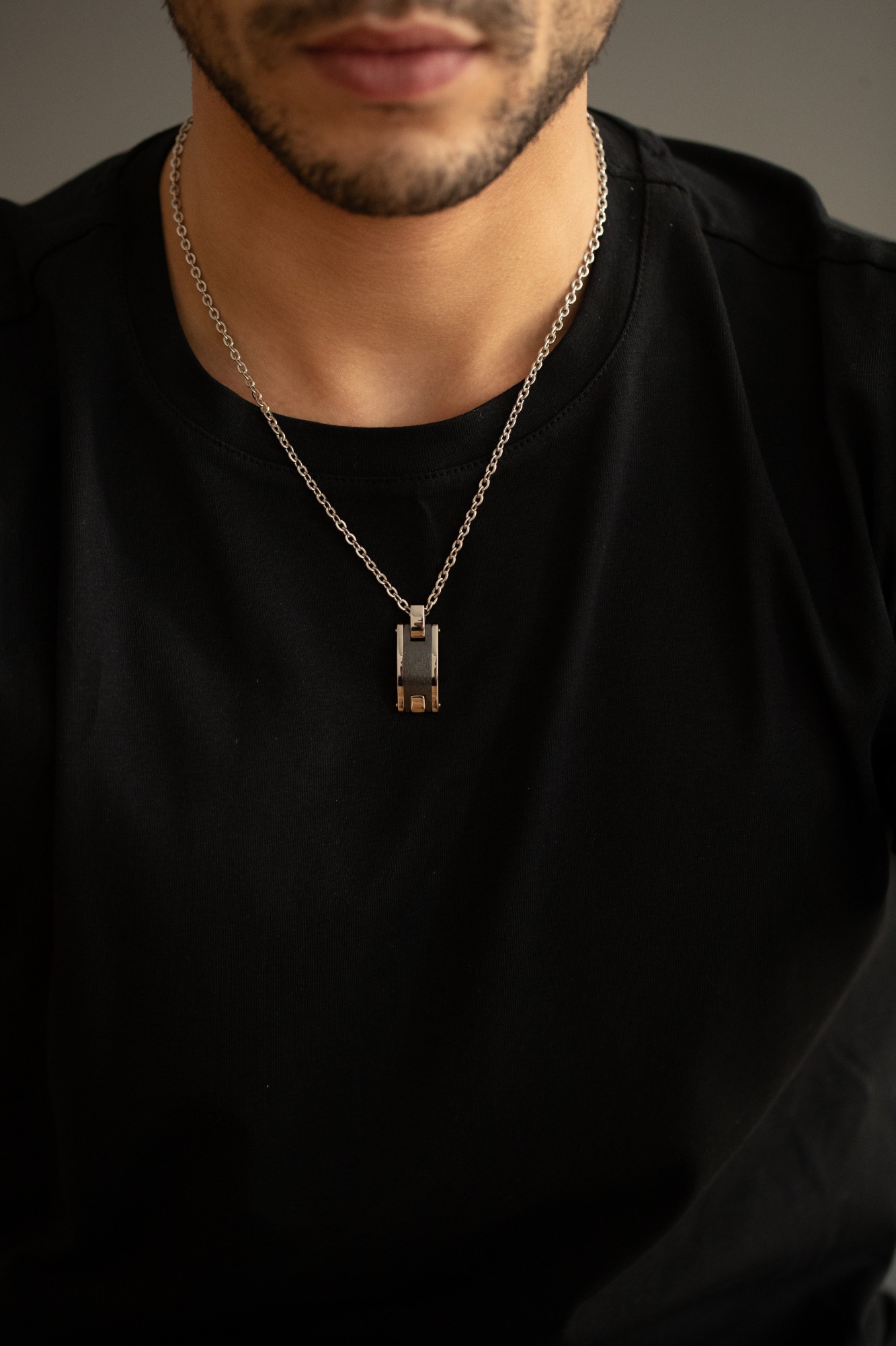 Un bijou aussi esthétique que résistant. Ce collier porte un pendentif prenant la forme d'une plaque de 5 cm. Celle-ci est composée d'acier 316L inoxydable blanc mat, avec une partie centrale en céramique noire. Garanti 2 ans, le collier Sergio est doté d'une chaîne d'une longueur de 50 cm et possède un fermoir à mousqueton. À l'épreuve du temps et de la vie, ce collier t'accompagne sans s'abîmer, en toutes circonstances. Une pièce qui souligne habilement ton côté masculin. Ce surprenant bijou s'avère idéal pour apporter une touche très tendance à tes tenues préférées. En toute occasion, profite de la robustesse et de l'aspect stylé de l'acier inoxydable pour mettre en avant ton caractère affirmé, s'affranchissant des codes classiques.