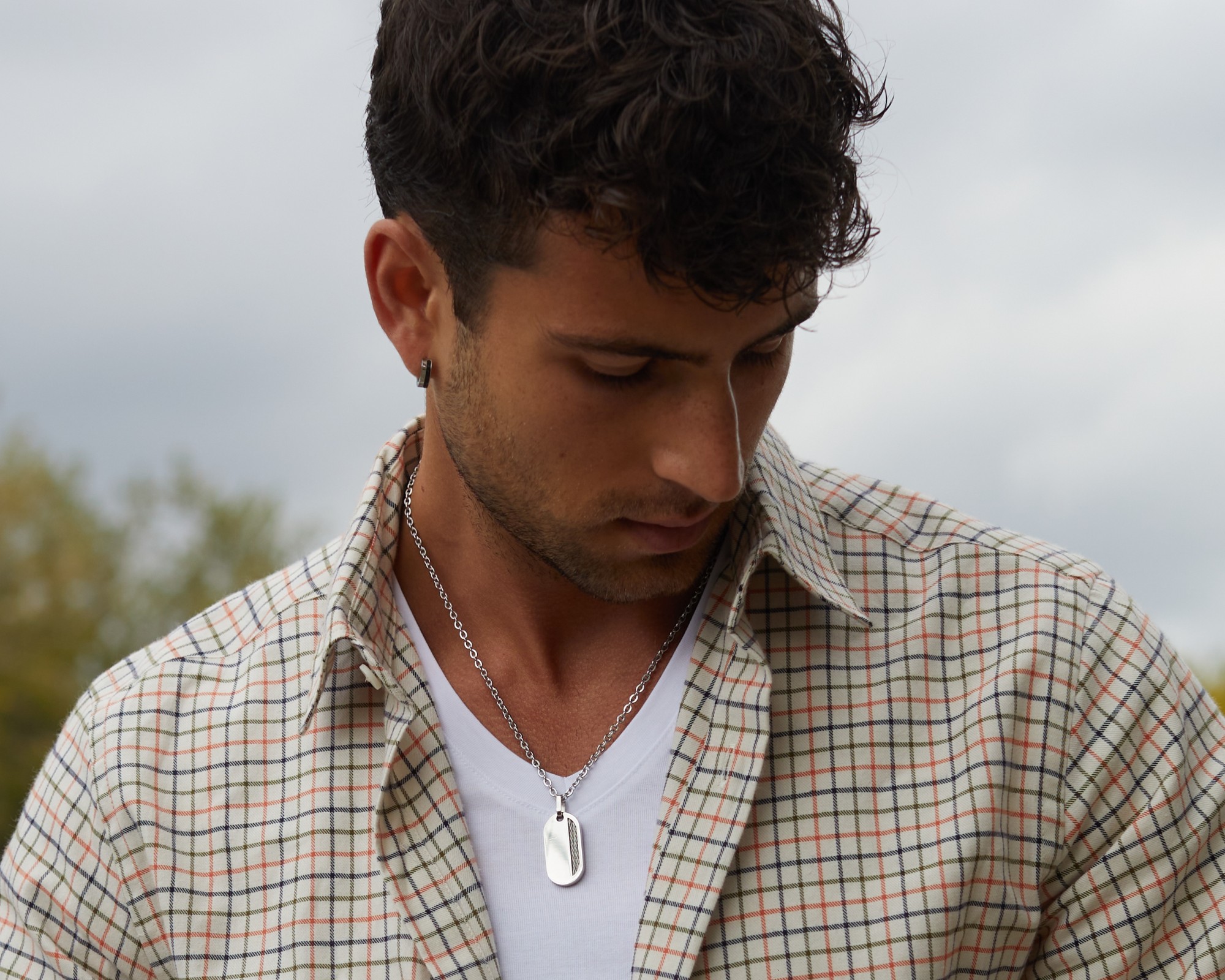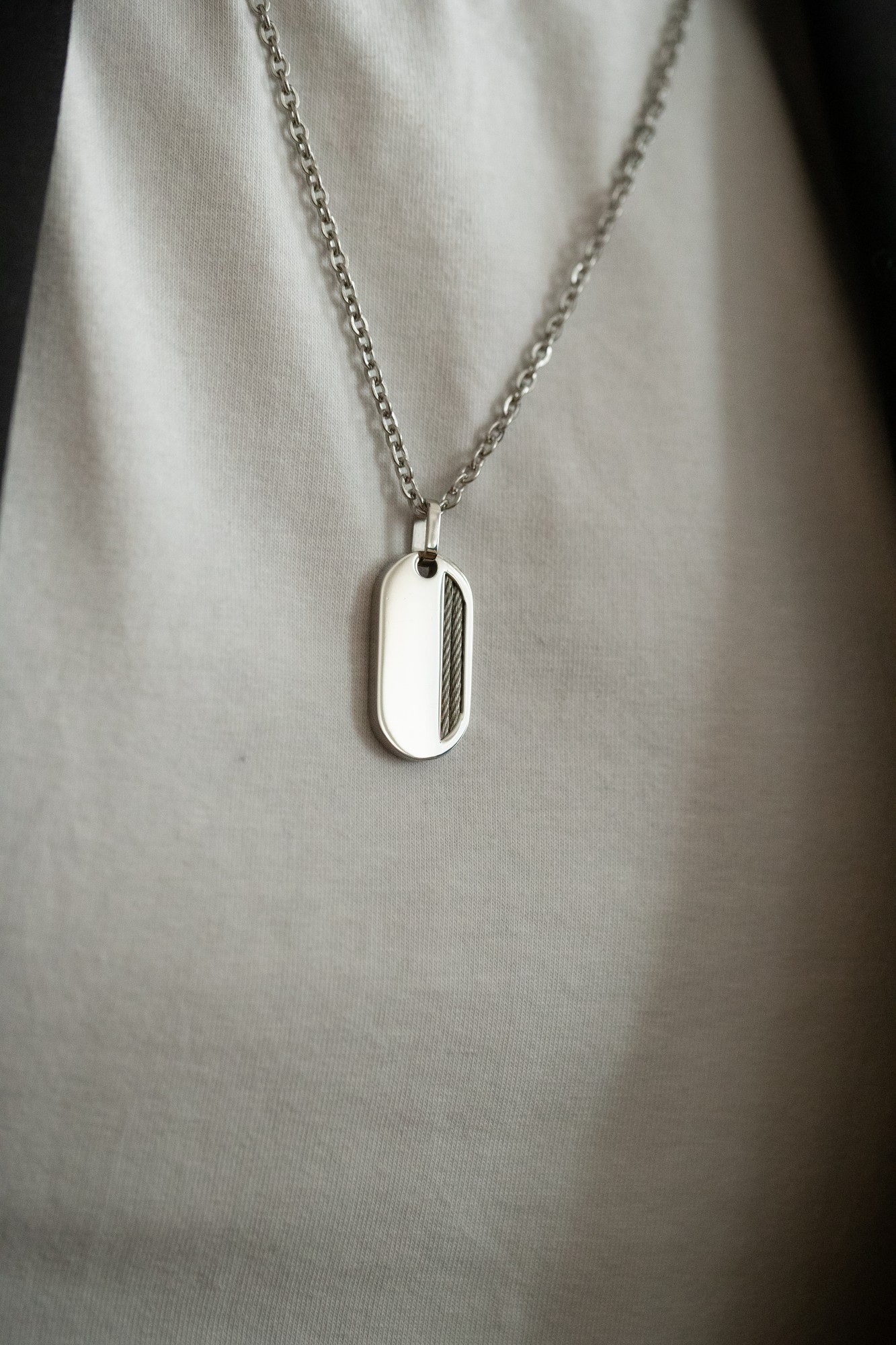 Ton collier tendance en acier inoxydable. Laisse-toi séduire par cette élégante plaque Phebus de forme oblongue, garantie 2 ans. En acier 316L inoxydable blanc brillant, ce bijou attire l'œil grâce à son motif latéral incrusté d'un double câble. La fermeture par mousqueton assure une excellente fixation à cette chaîne de 50 cm. Un bijou pour homme au design ultramoderne. Combiné à un style casual, le collier Sashi apporte un côté contemporain et raffiné à ta tenue. Fais-en un vecteur de communication qui te permet d'exprimer distinctement ta personnalité en l'associant, par exemple, à un tee-shirt col V et à une chemise déboutonnée.