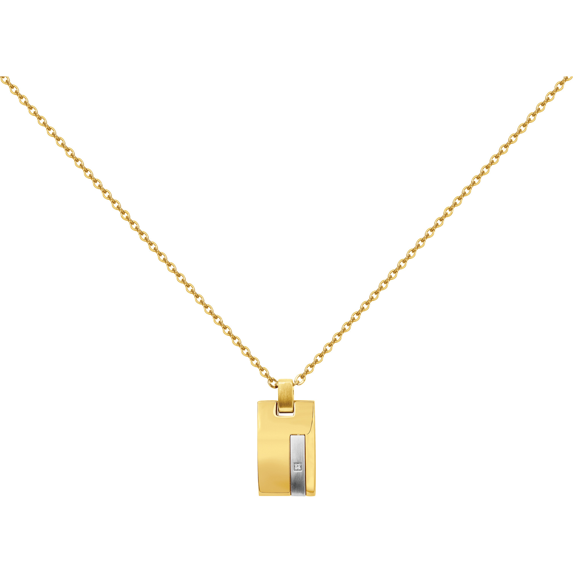 Une plaque pour homme aux détails scintillants. Voici un pendentif Phebus en acier 316L inoxydable, composé d'une chaîne de 50 cm et d'une plaque de 5 cm, en partie habillée de PVD jaune brillant. Serti d'un diamant blanc de 0.005 carat, ce bijou surprenant est garanti 2 ans. Sa conception de qualité lui apporte résistance et longévité. Ose le collier Christiano doré, pour un look intrépide. Les finitions brillantes associées à des formes modernes offrent à cet accessoire une allure unique, mêlant charme et élégance. Montre ton enthousiasme et ton dynamisme avec ce bijou inoxydable, qui révèle immanquablement tes atouts séduction.