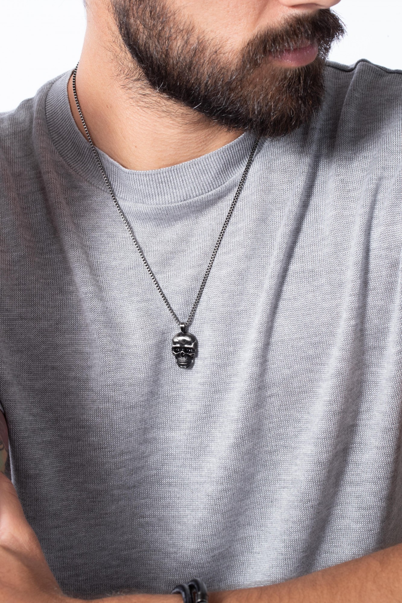 Collier Tête de mort Noir pour Homme en céramique et Acier