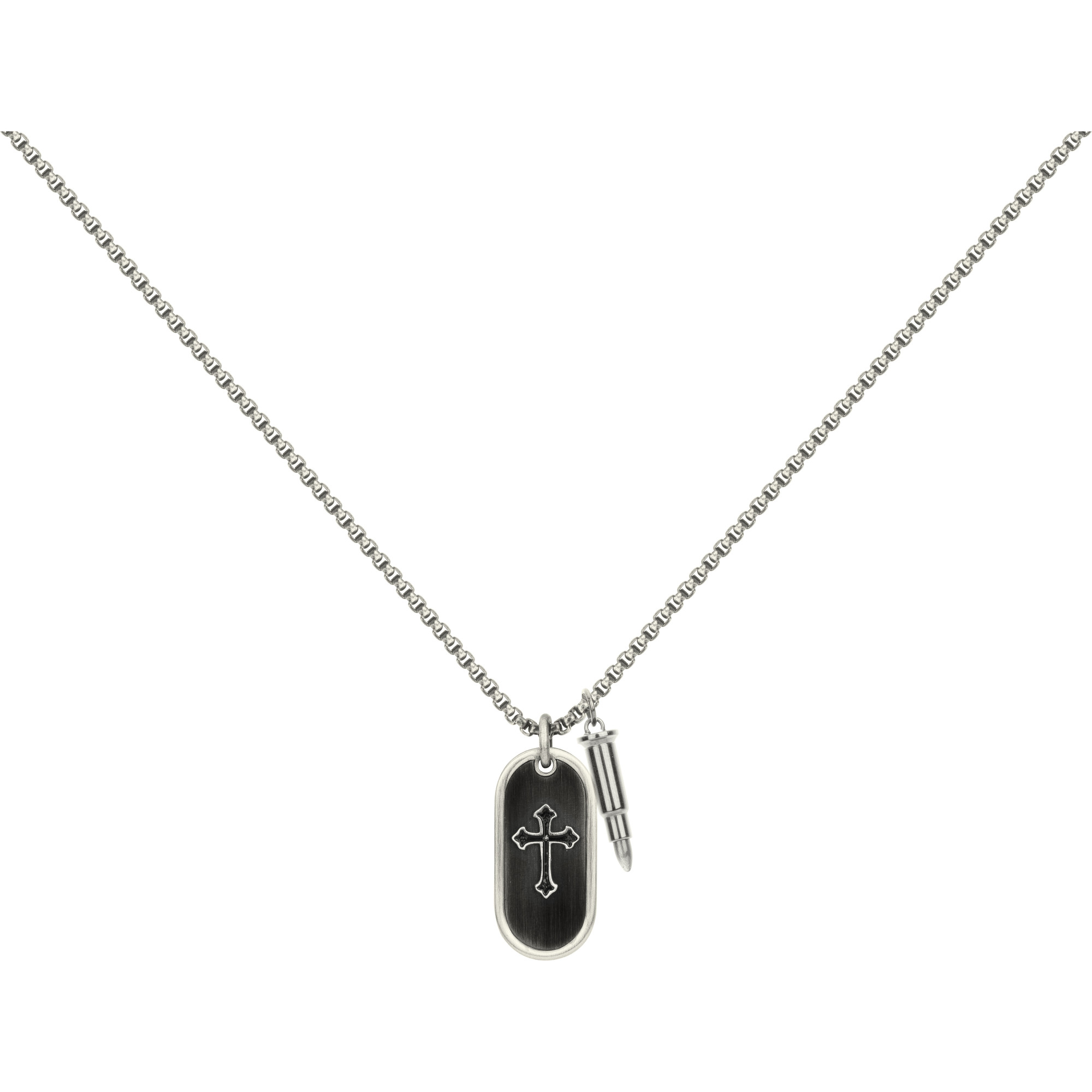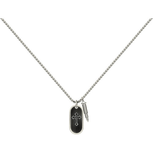 Un bijou suggestif très robuste. Voici un collier Legend à double pendentif qui se distingue avec son cartouche ovale à motif de croix gothique, associé à une balle en acier 316L inoxydable. La chaîne vénitienne, réglable de 50 à 55 cm, renforce l'aspect vintage. Un bijou garanti 2 ans, pour un style résolument à part. Effronté, combatif, obstiné... Donne du sens à ton look. Étroitement liés, les deux éléments de ce collier Phebus en acier inoxydable lui apportent une signification profonde. Un accessoire hors du commun, qui interpelle et fascine les hommes au style ténébreux.