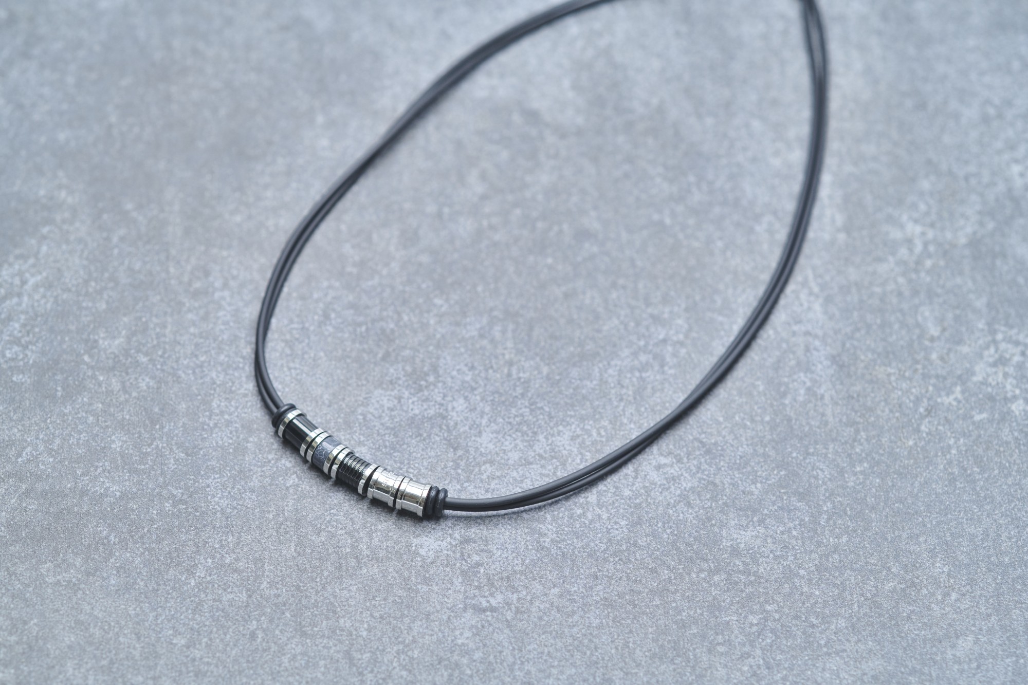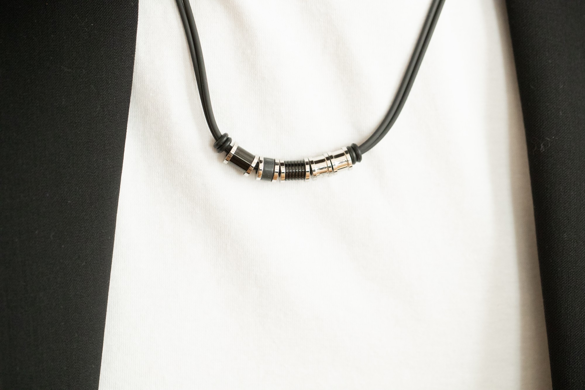 Un collier masculin tendance et fait pour durer. Le collier Max est composé de pièces en acier 316L inoxydable portées par un cordon en cuir. Garanti 2 ans, ce bijou est réglable de 50 à 60 cm à l'aide d'un fermoir mousqueton. Le cordon souple est très agréable à porter et les perles en acier créent un mouvement fluide qui donne vie à tes tenues. Mode et plaisir, avec un bijou casual fait pour durer. Cet accessoire Phebus s’accorde bien avec le style simple et efficace t-shirt et jean. Les éléments d'acier inoxydable rehaussent ton côté viril, pour un effet séduction assuré.