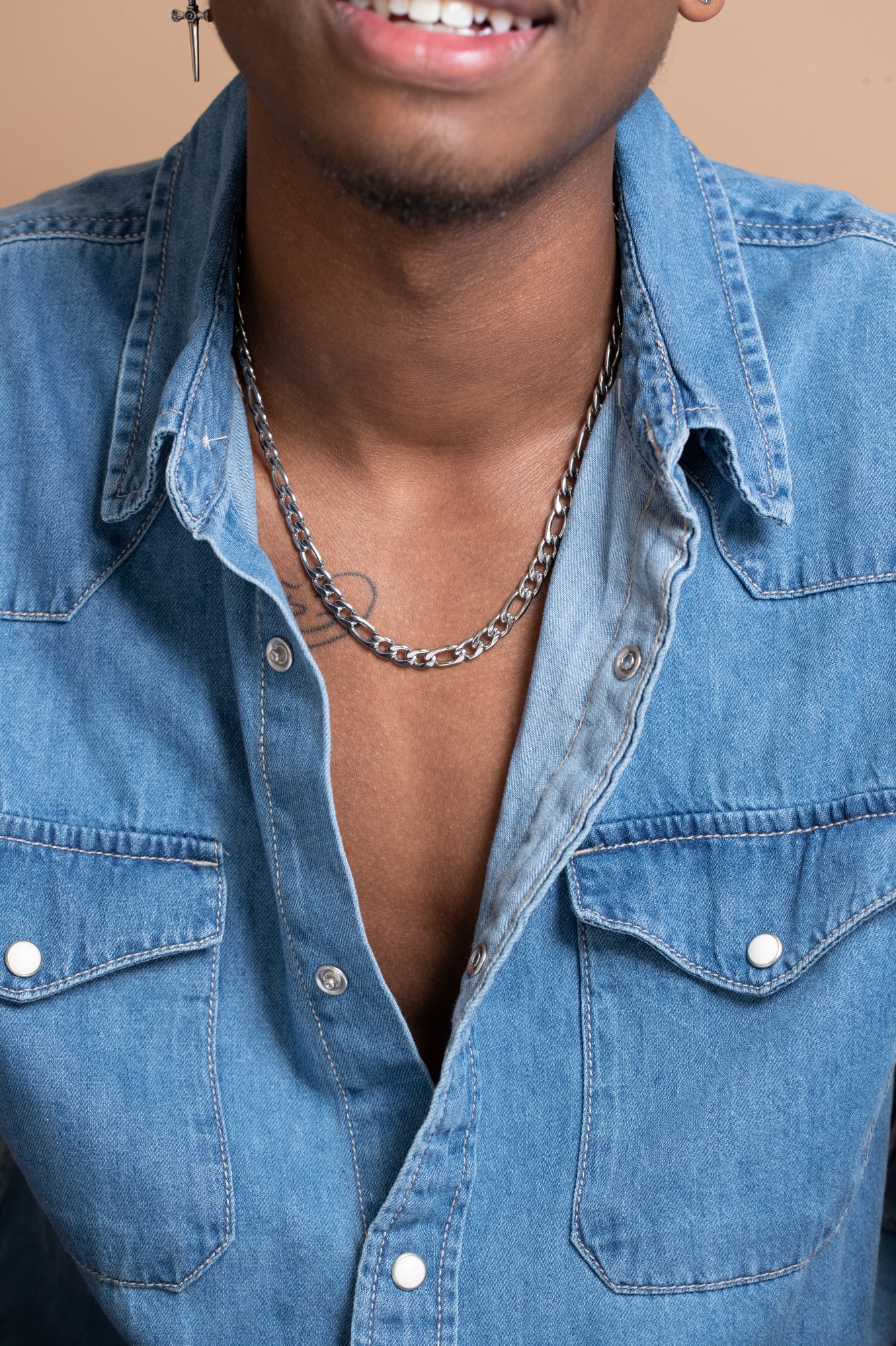 Collier Elio pour homme en acier 316L inoxydable. Ce collier a été conçu pour durer : garanti 2 ans, il est réalisé à partir d'acier inoxydable de haute qualité, un matériau très solide qui lui permet d'être porté quotidiennement. D'une longueur de 55 cm, il s'attache très facilement et reste bien en place autour de ton cou grâce à son fermoir. Une touche d'originalité à ta tenue avec cette chaîne pour homme en acier inoxydable. Ce collier signé Phebus est parfait si tu souhaites affirmer ta personnalité grâce à un bijou au design qui sort de l'ordinaire !.