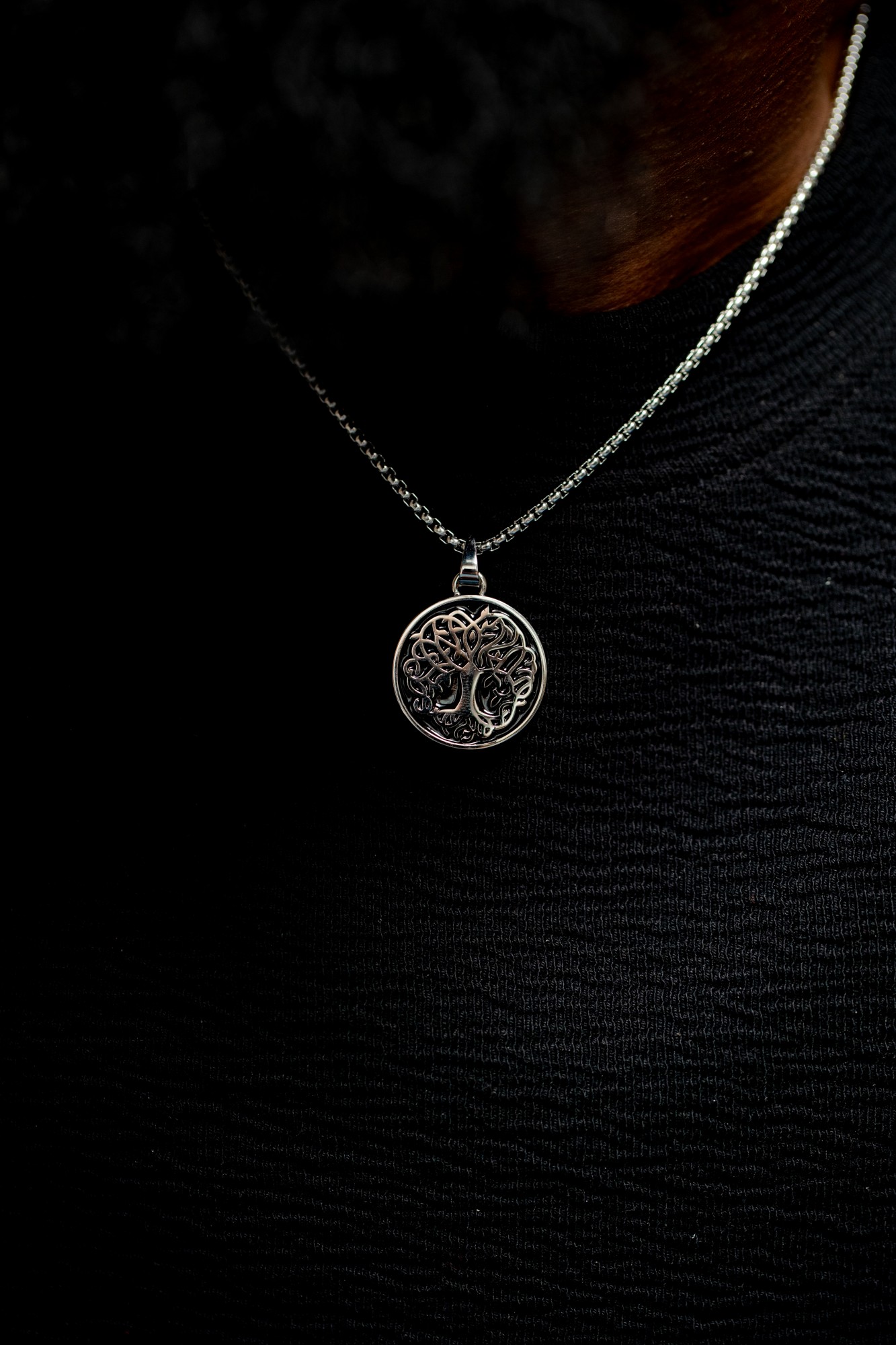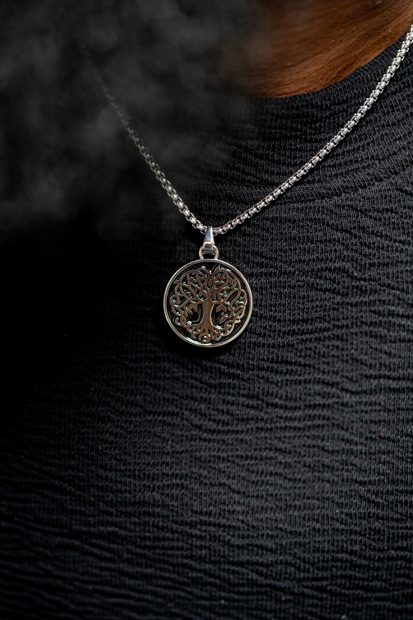 Collier Arbre pour homme en céramique et acier 316L.