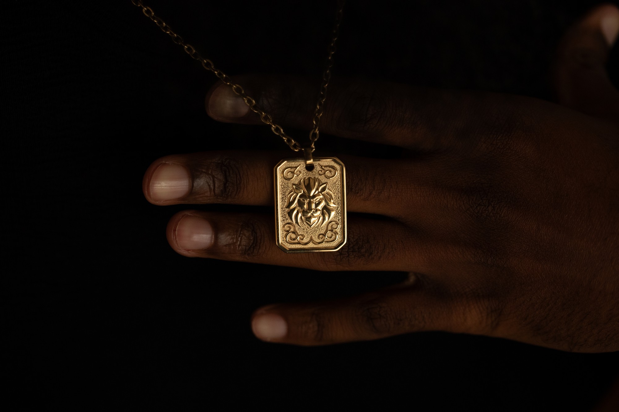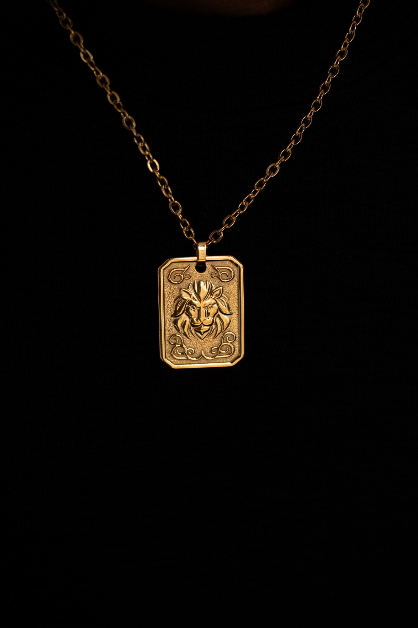 Collier Zodiaque Lion Doré pour homme en céramique et acier 316L.