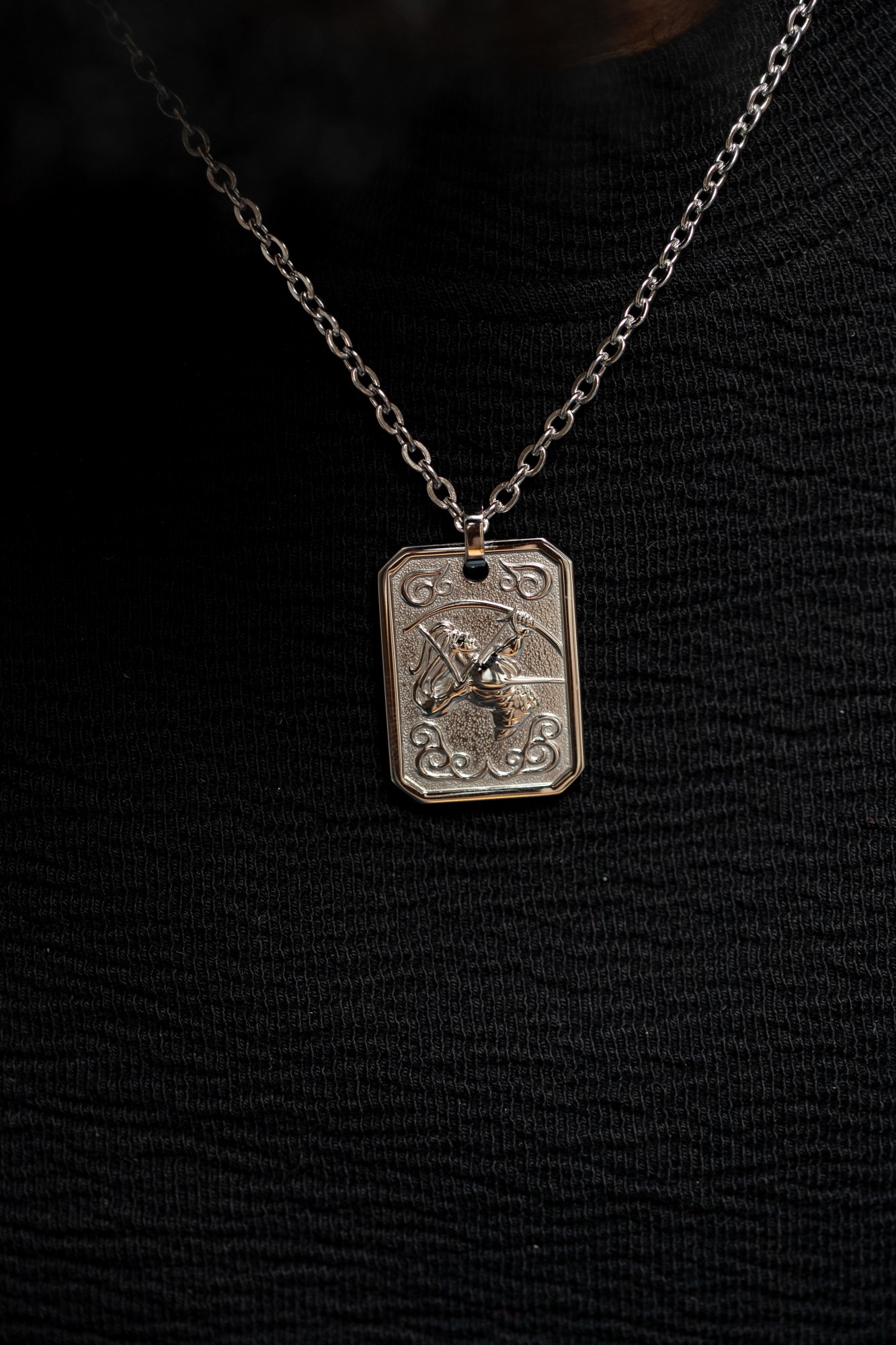 Collier Zodiaque Sagittaire argent 925 millièmes rhodié pour homme en céramique et acier 316L.