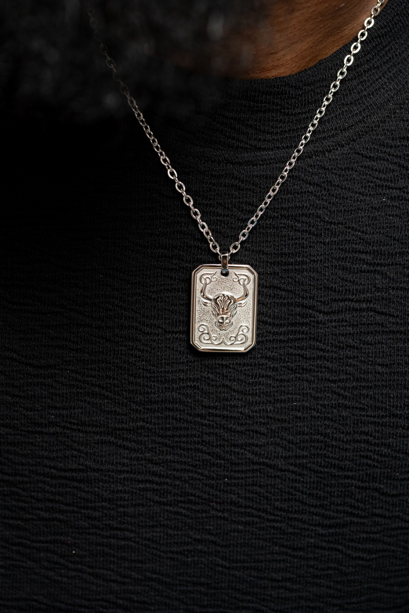 Collier Zodiaque Taureau argent 925 millièmes rhodié pour homme en céramique et acier 316L.