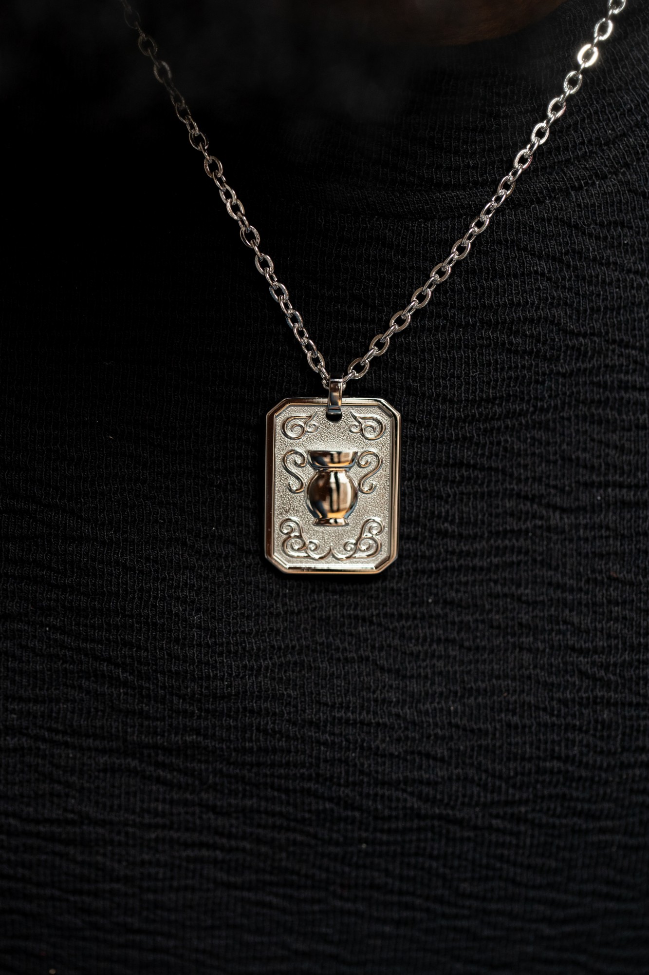 Collier Zodiaque Verseau argent 925 millièmes rhodié pour homme en céramique et acier 316L.