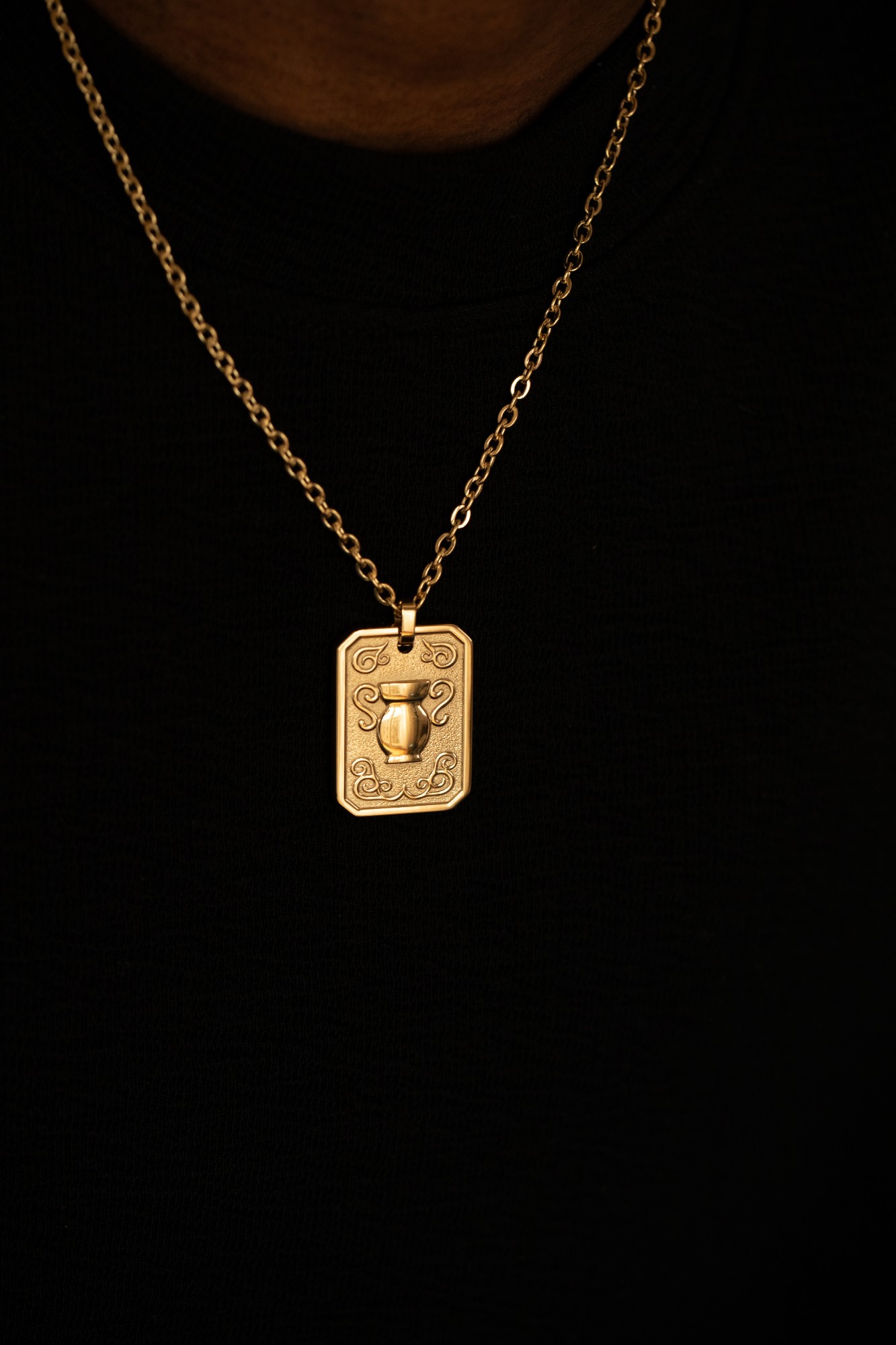 Collier Zodiaque Verseau Doré pour homme en céramique et acier 316L.