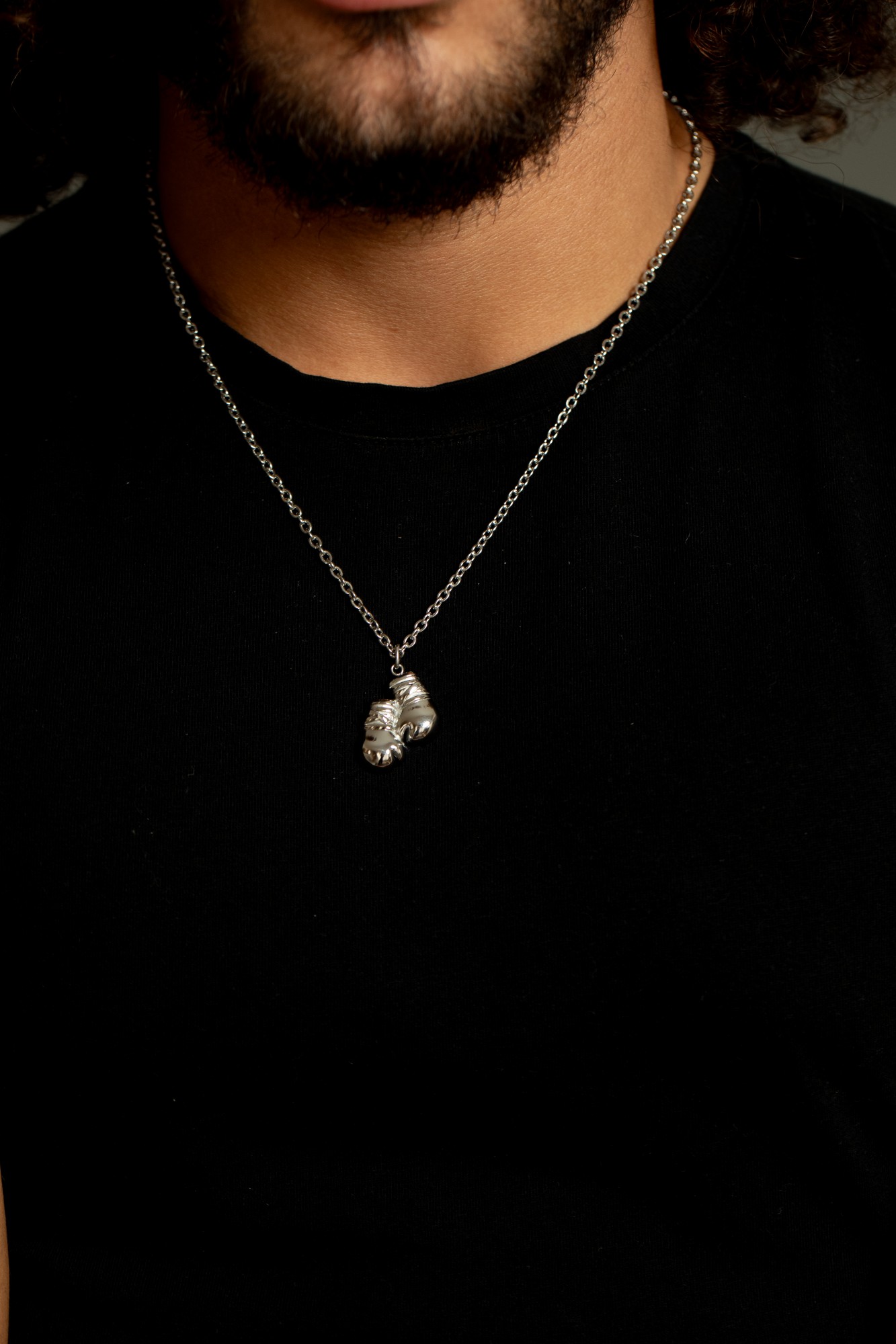 Collier Boxe pour homme en acier inoxydable 316L, finition acier blanc, au design brut et affirmé. Pensé pour un style urbain qui ne passe pas inaperçu.