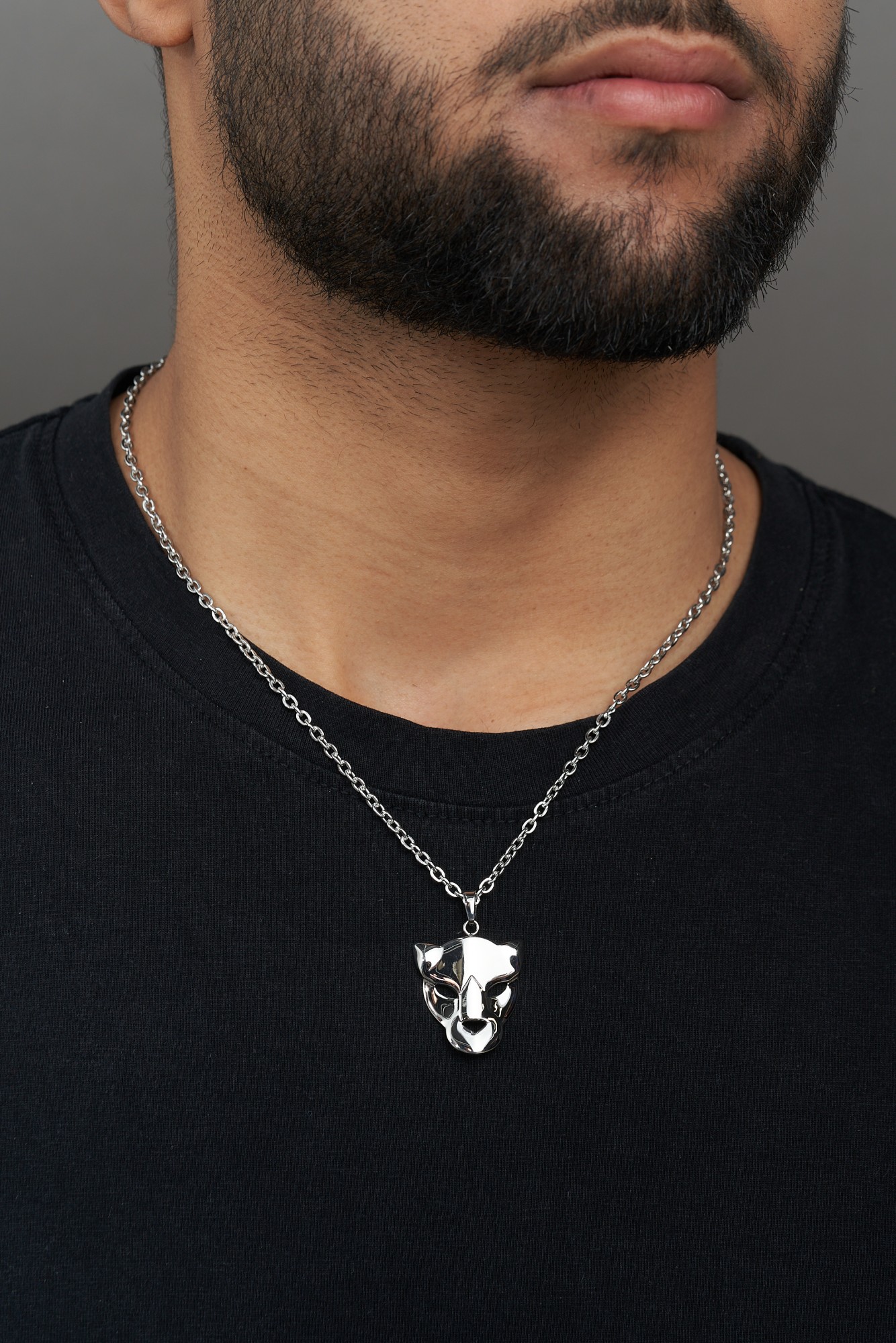 Collier Panthère pour homme en céramique et acier 316L.