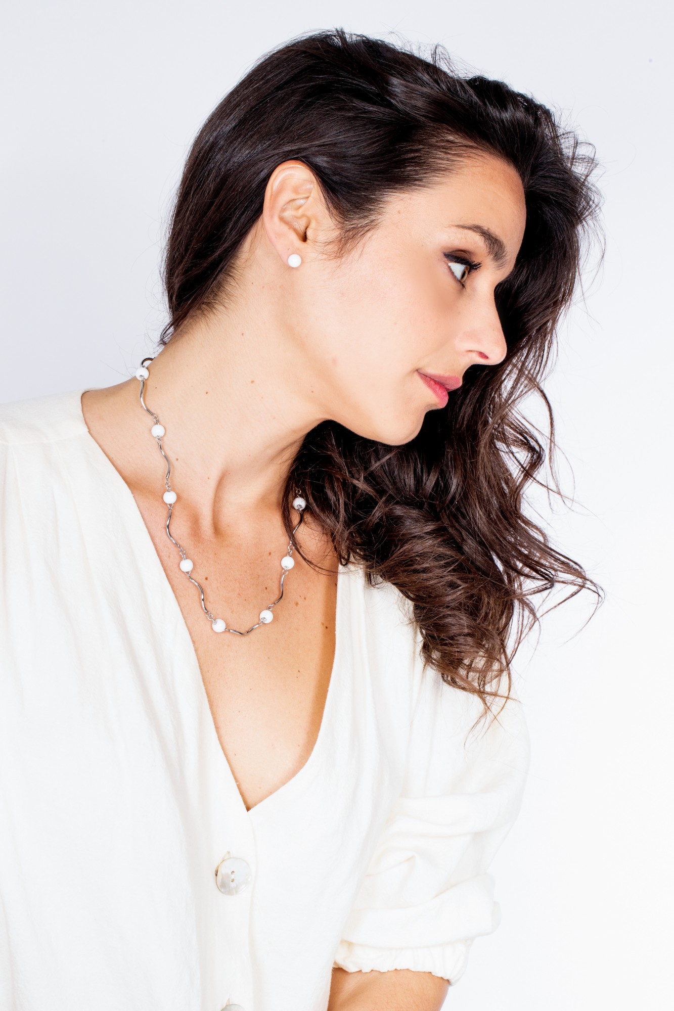 Collier Violet blanc pour femme en céramique et acier 316L.