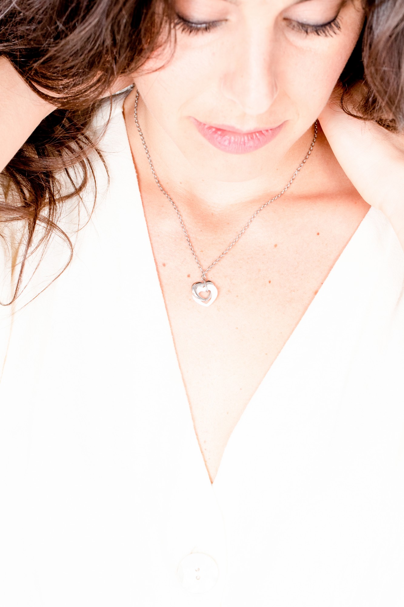 Collier Naomi blanc pour femme en céramique et acier 316L.