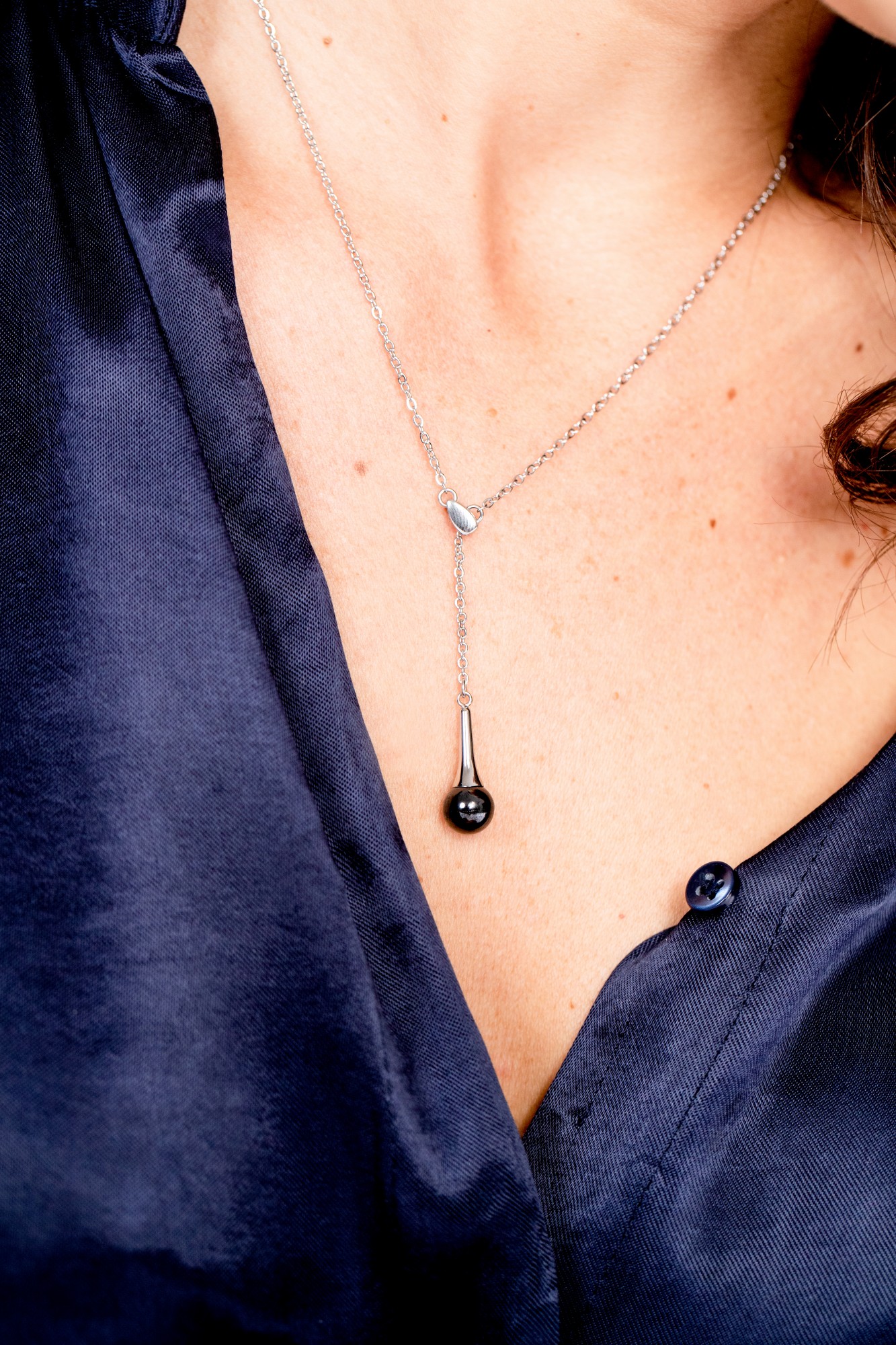 Collier Luce noir pour femme en céramique et acier 316L.