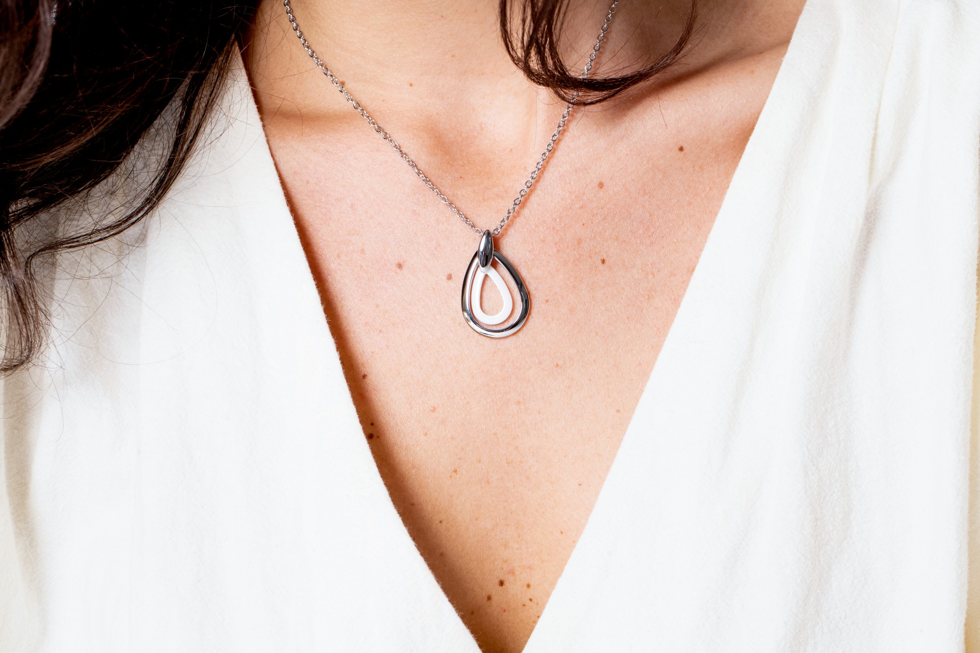 Collier Alice blanc pour femme en céramique et acier 316L.