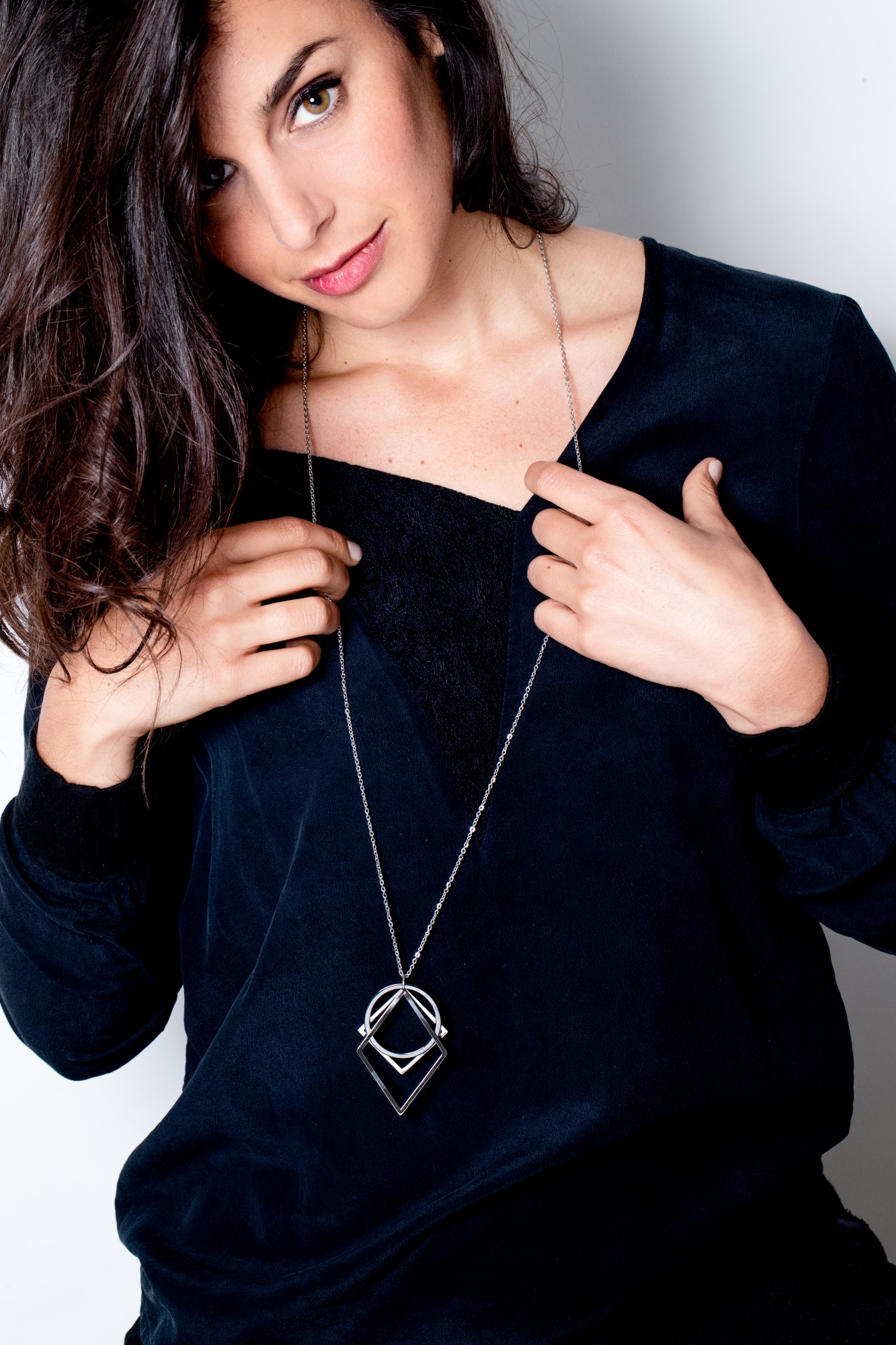 Collier Gabriella noir pour femme en céramique et acier 316L.
