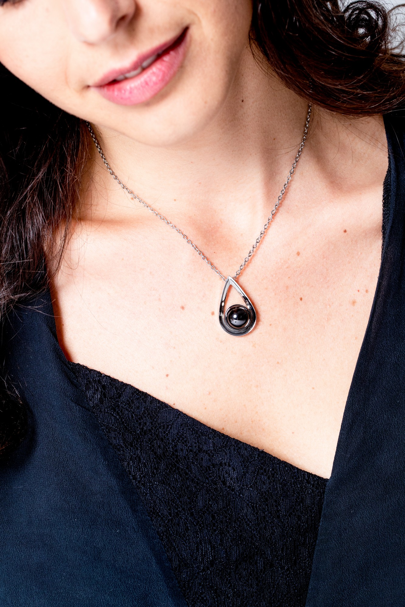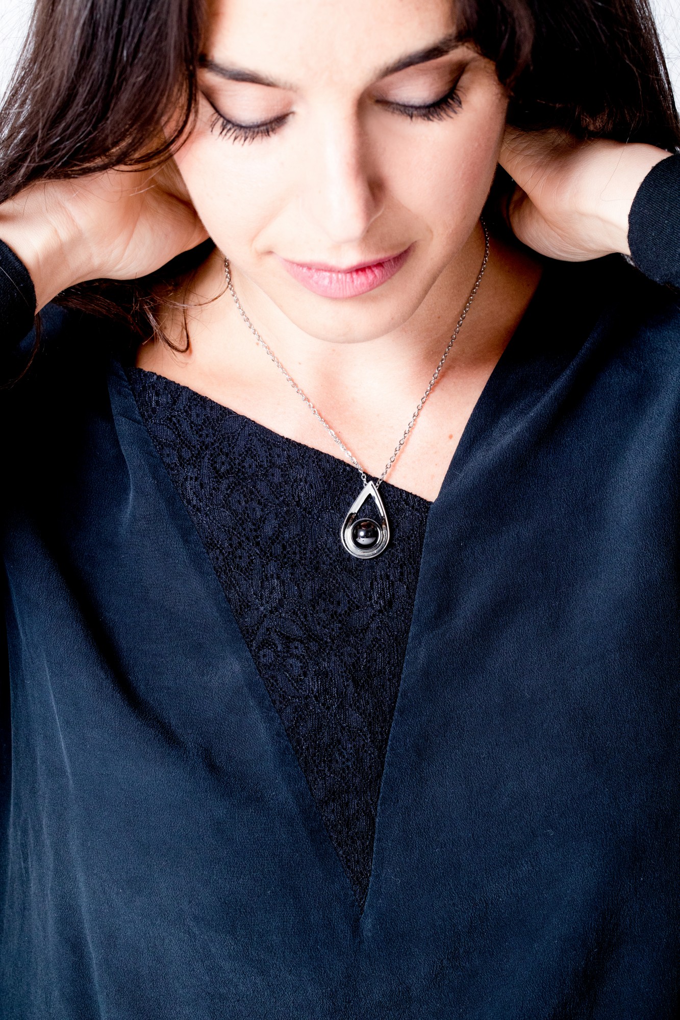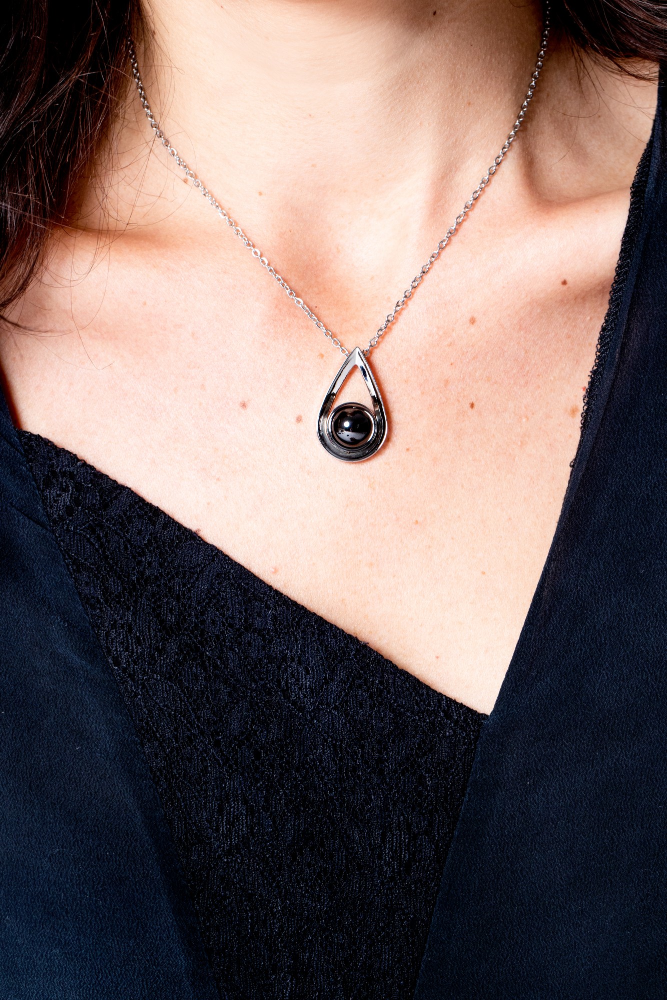 Collier Caroline noir pour femme en céramique et acier 316L.